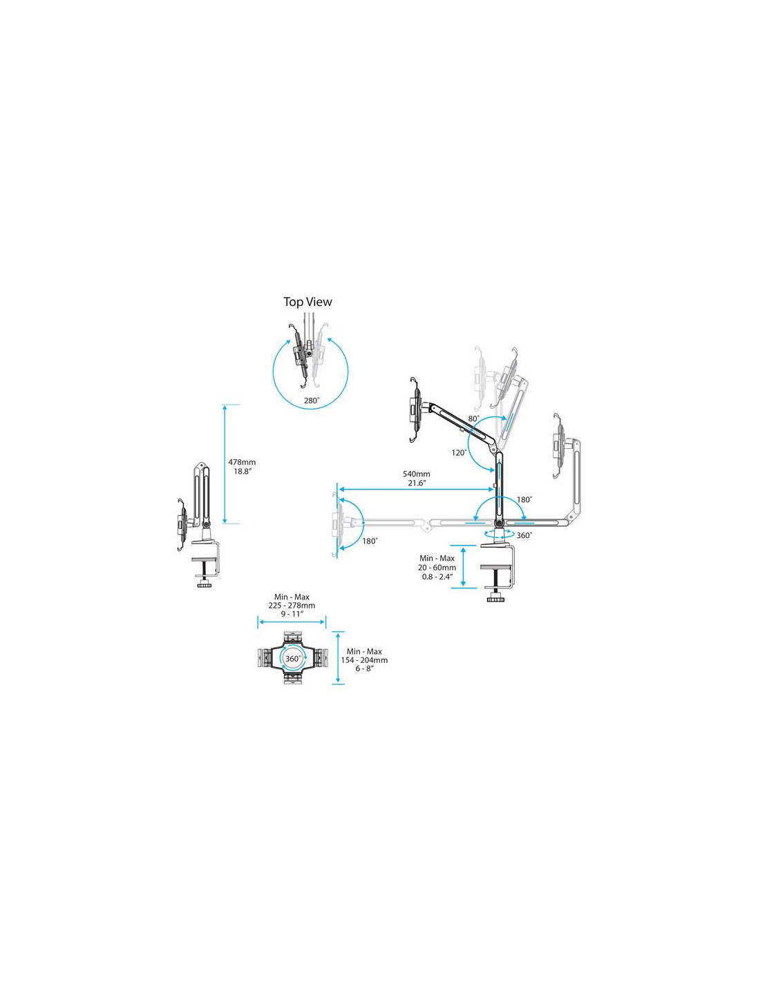 Utilizzate un braccio porta monitor per sfruttare pienamente le capacità del vostro schermo. Il braccio è facile da regolare in altezza. È inoltre possibile inclinare lo schermo in senso verticale, orizzontale e farlo ruotare; questo crea la posizione ergonomica di lavoro ideale riducendo il rischio di mal di schiena e al collo. I cavi possono essere collocati sul lato orizzontale del braccio e attraverso la predisposizione di passaggio all'interno della colonna.