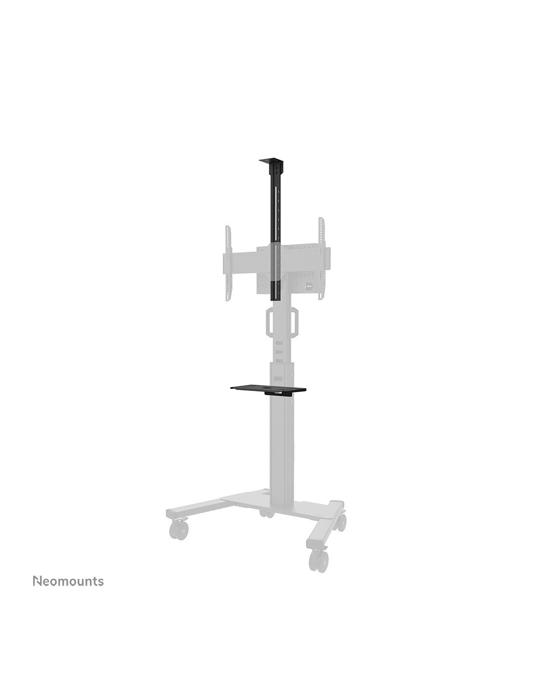 Neomounts AFLS-825BL1 è un kit videobar e multimediale opzionale per la piantana mobile FL50S-825BL1. Il kit consente di installare sul carrello un ripiano separato per cam e dispositivi multimediali. Il ripiano universale per cam può essere installato sia sopra che sotto lo schermo ed è regolabile in altezza, per adattarsi allo schermo. Inoltre, il ripiano per cam può essere montato sia sul fronte che sul retro del supporto. Il kit include un adattatore per la barra Rally e la barra Rally Mini di Logitech (entrambe posizionabili sopra e sotto lo schermo). Inoltre, il ripiano multimediale universale è adatto per l'installazione, ad esempio, del Logitech Tap.