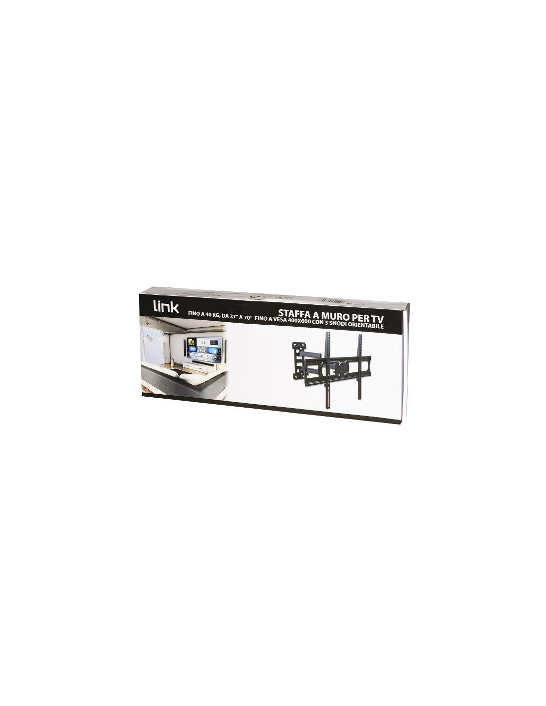 STAFFA A MURO PER TV FINO A 40 KG DA 37 A 70 FINO A VESA 400X600 CON 3 SNODI ORIENTAMENTO ALTO/BASSO 5-10° ORIENTAMENTO LATERALE 45°