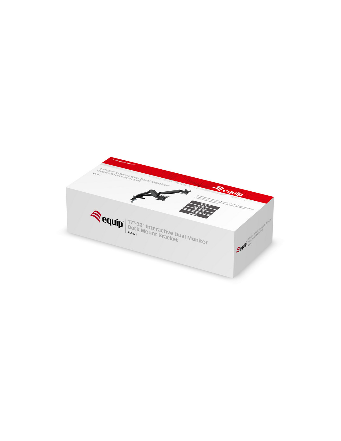 "Il supporto interattivo per doppio monitor da scrivania equip® 17""-32"" con struttura a molla a gas è una soluzione dinamica progettata per elevare l'esperienza della postazione di lavoro. Compatibile con monitor da 17 a 32 pollici, questo supporto è caratterizzato da un design interattivo che consente di regolare facilmente l'inclinazione, la rotazione e l'altezza. Il meccanismo a molla a gas consente un movimento fluido e facile, facilitando le transizioni tra diversi angoli e posizioni di visualizzazione. Questo migliora il comfort ergonomico e riduce al minimo le tensioni durante l'uso prolungato.