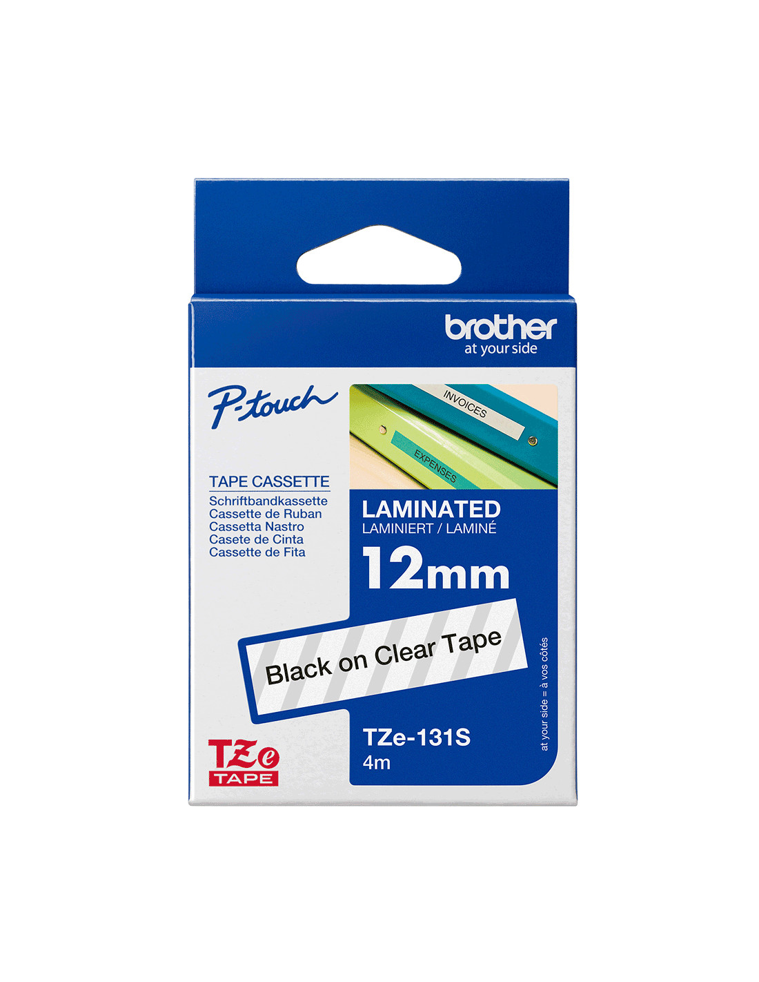 Brother TZE131S. Colore etichetta: Nero trasparente, Tipo nastro: TZe, Colore del prodotto: Grigio. Ampiezza nastro: 1,2 cm, Lunghezza nastro: 4 m, Larghezza: 20 mm. Altezza del pallet: 17,1 cm, Numero di cartoni per pallet: 60 pz, Numero di livelli per pallet: 6 pz
