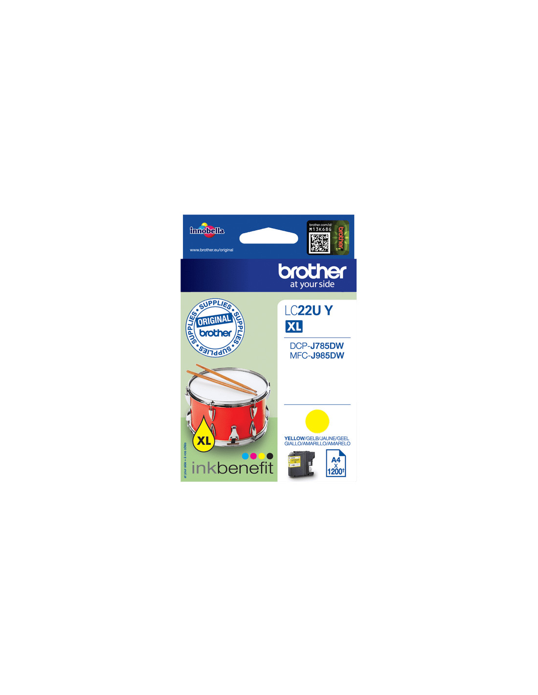 Acquista questa cartuccia originale LC22UY di inchiostro ad altissima capacità per continuare a ottenere le massime prestazioni dalla tua stampante. Trattandosi di una cartuccia ad altissimo rendimento, la LC22UY dura molto più a lungo di una cartuccia Brother standard e offre risultati di qualità eccellente.