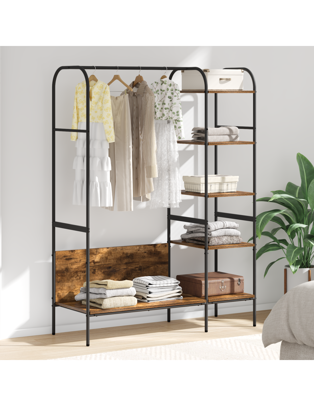 Questo appendiabiti moderno ha linee pulite e una funzionalità smart, rendendolo un'aggiunta chic a qualsiasi soggiorno grazie al suo design rettangolare e minimalista. È perfetto per chi ama sia l'estetica che la praticità: è la soluzione ideale per tenere in ordine il guardaroba. È realizzato in legno ingegnerizzato con un robusto telaio in acciaio, riuscendo a mescolarsi bene con vari stili di decorazione.