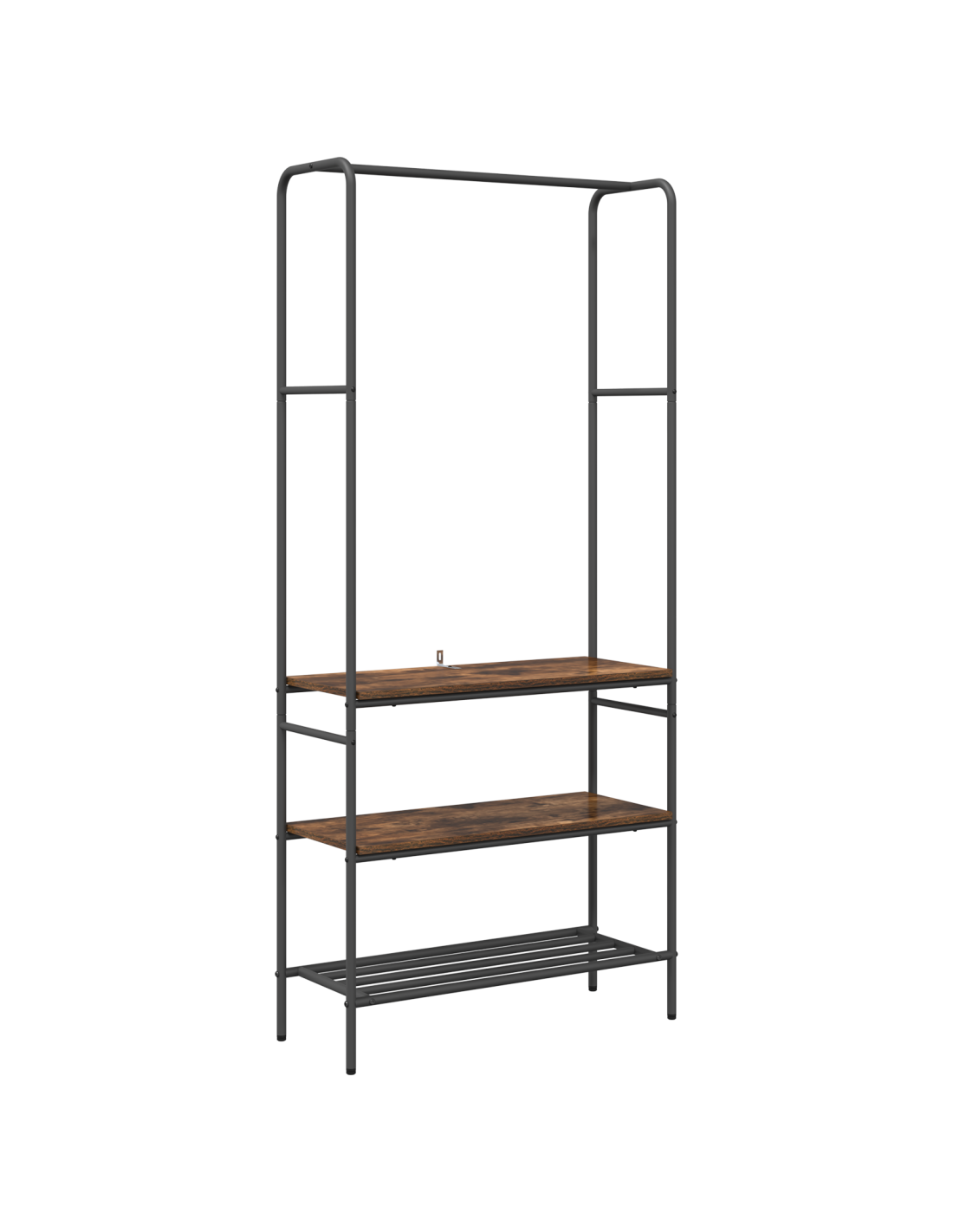 - Componenti funzionali: Ogni parte è realizzata per soddisfare le varie esigenze di stoccaggio. Con un telaio in acciaio robusto e ripiani in legno, l'appendiabiti accoglie facilmente vestiti e accessori, rendendolo versatile per tutti.