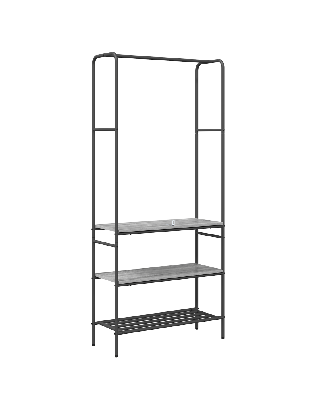 - Componenti funzionali: Ogni parte è realizzata per soddisfare le varie esigenze di stoccaggio. Con un telaio in acciaio robusto e ripiani in legno, l'appendiabiti accoglie facilmente vestiti e accessori, rendendolo versatile per tutti.