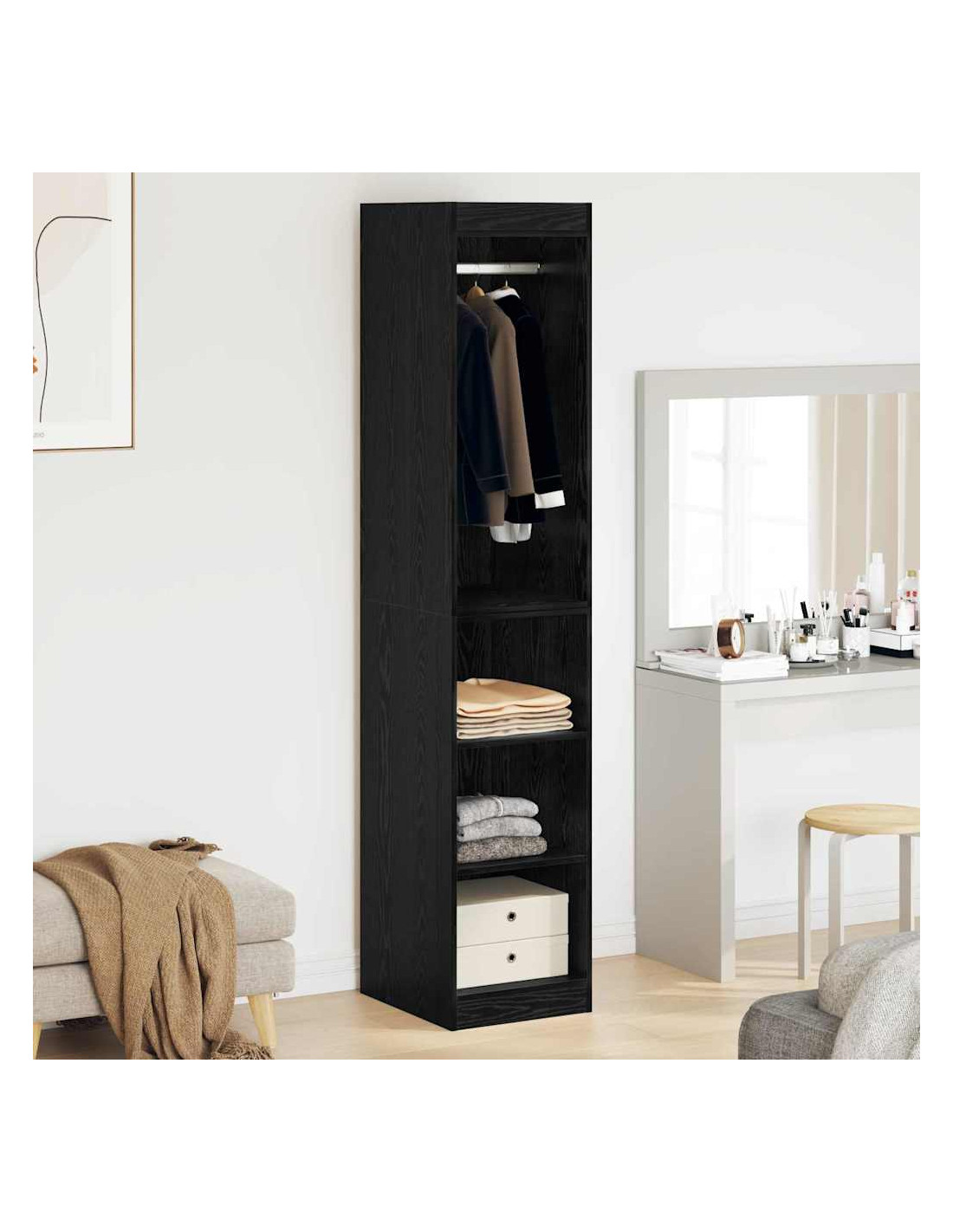 - Costruzione premium: Questo elegante armadio in legno ingegnerizzato è robusto e resistente, pensato per un uso duraturo. Può contenere vari vestiti e accessori, mantenendo un aspetto curato in ogni ambiente.