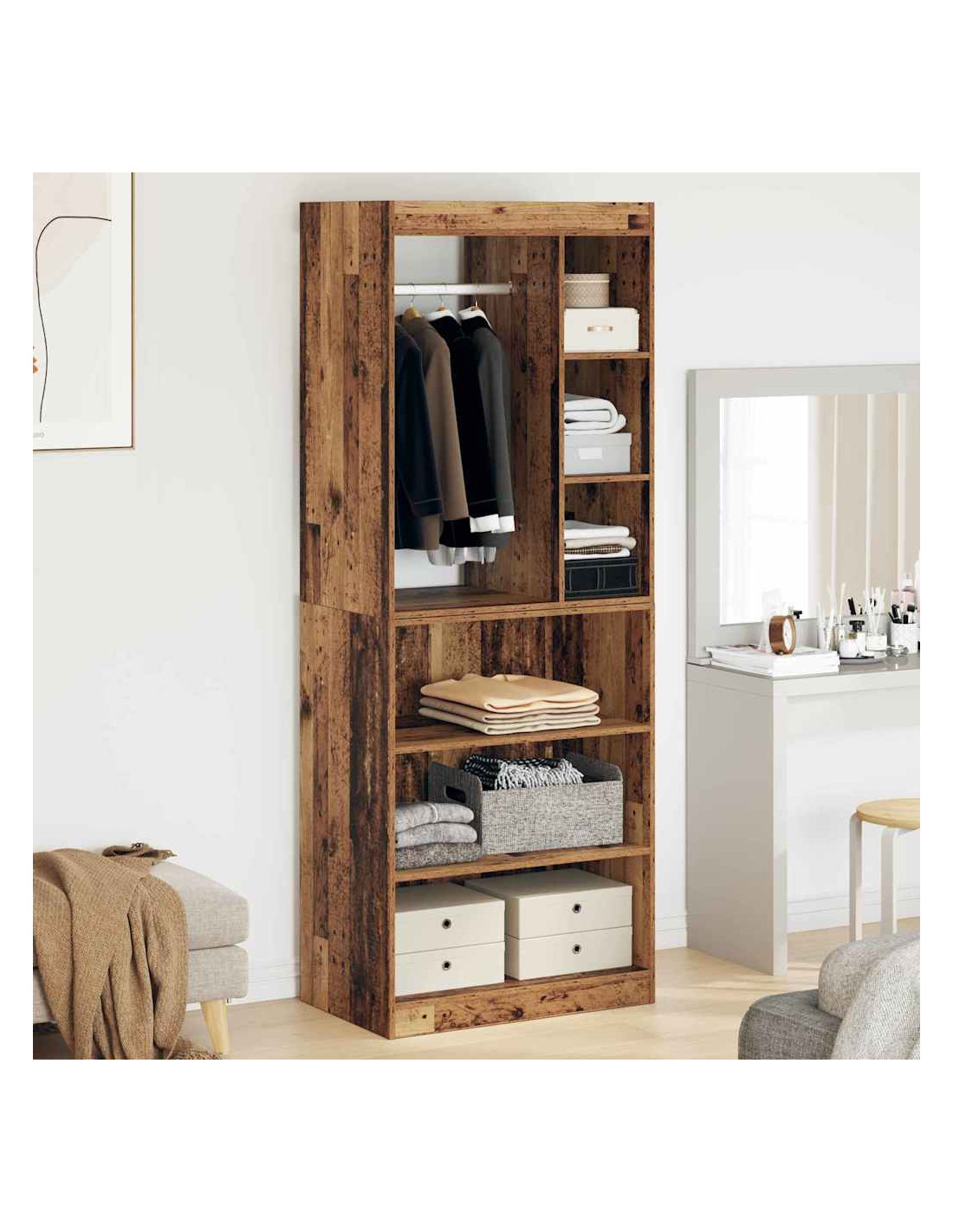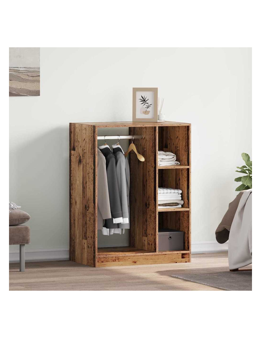 - Costruzione premium: Questo elegante armadio in legno ingegnerizzato è robusto e resistente, pensato per un uso duraturo. Può contenere vari vestiti e accessori, mantenendo un aspetto curato in ogni ambiente.