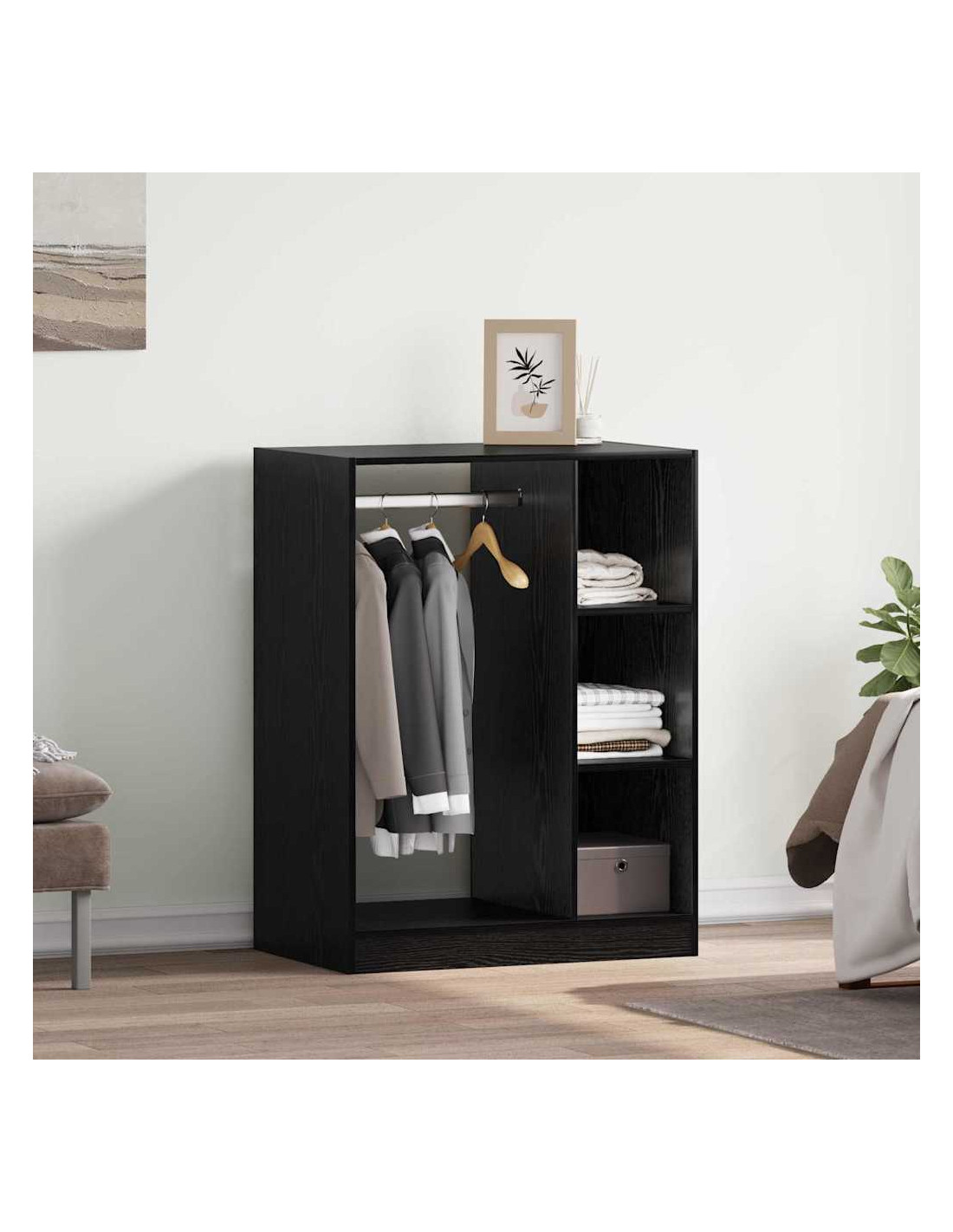 - Costruzione premium: Questo elegante armadio in legno ingegnerizzato è robusto e resistente, pensato per un uso duraturo. Può contenere vari vestiti e accessori, mantenendo un aspetto curato in ogni ambiente.