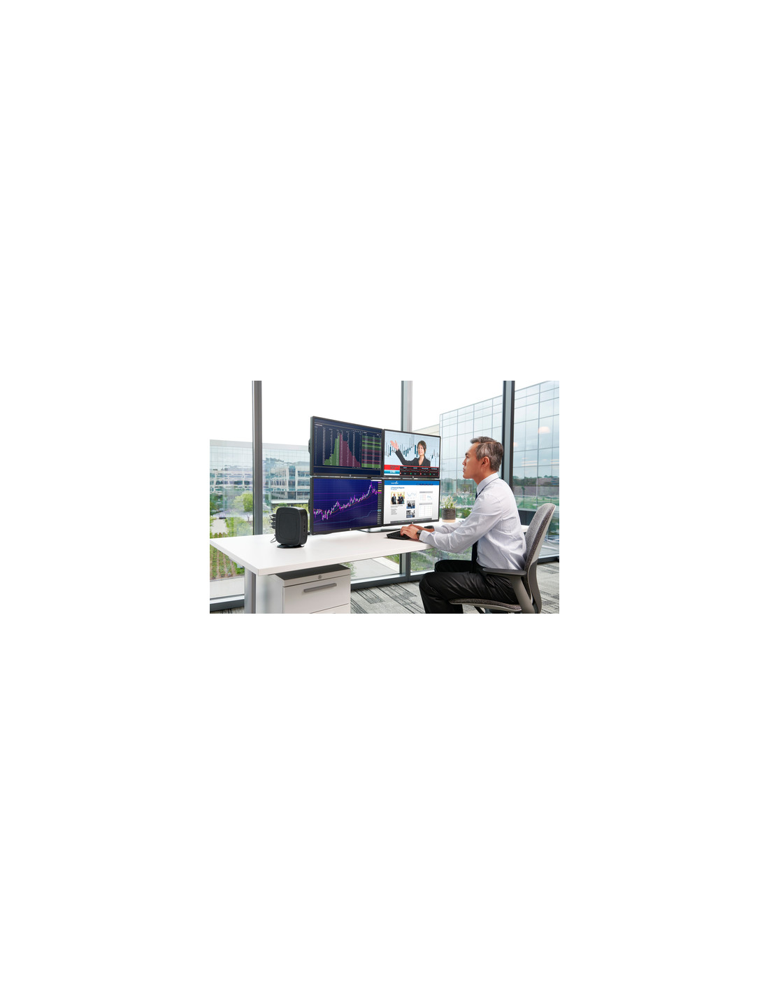 Aumentate le prestazioni dei vostri dispositivi a uso intensivo di grafica, virtuali, cloud e locali in tutta sicurezza con HP t740 Thin Client, il nostro thin client desktop più potente che supporta fino a sei monitor 4K[1].