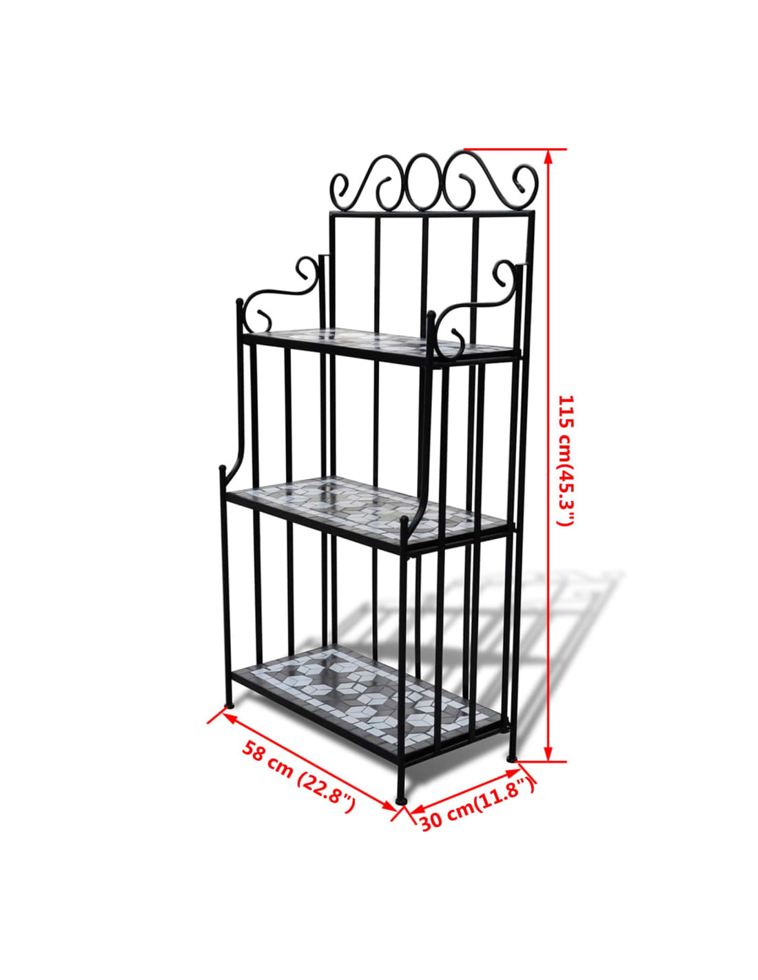 Il portapiante a 3 strati ha un'altezza di 115 cm e può essere perfettamente posizionato contro qualsiasi parete. La sua struttura in ferro contribuisce alla robustezza, mentre il piano in ceramica è anche facile da pulire. È molto resistente per una durata di servizio a lungo termine. Si prega di notare che questo prodotto non è adatto per essere lasciato all'aperto in condizioni di freddo.