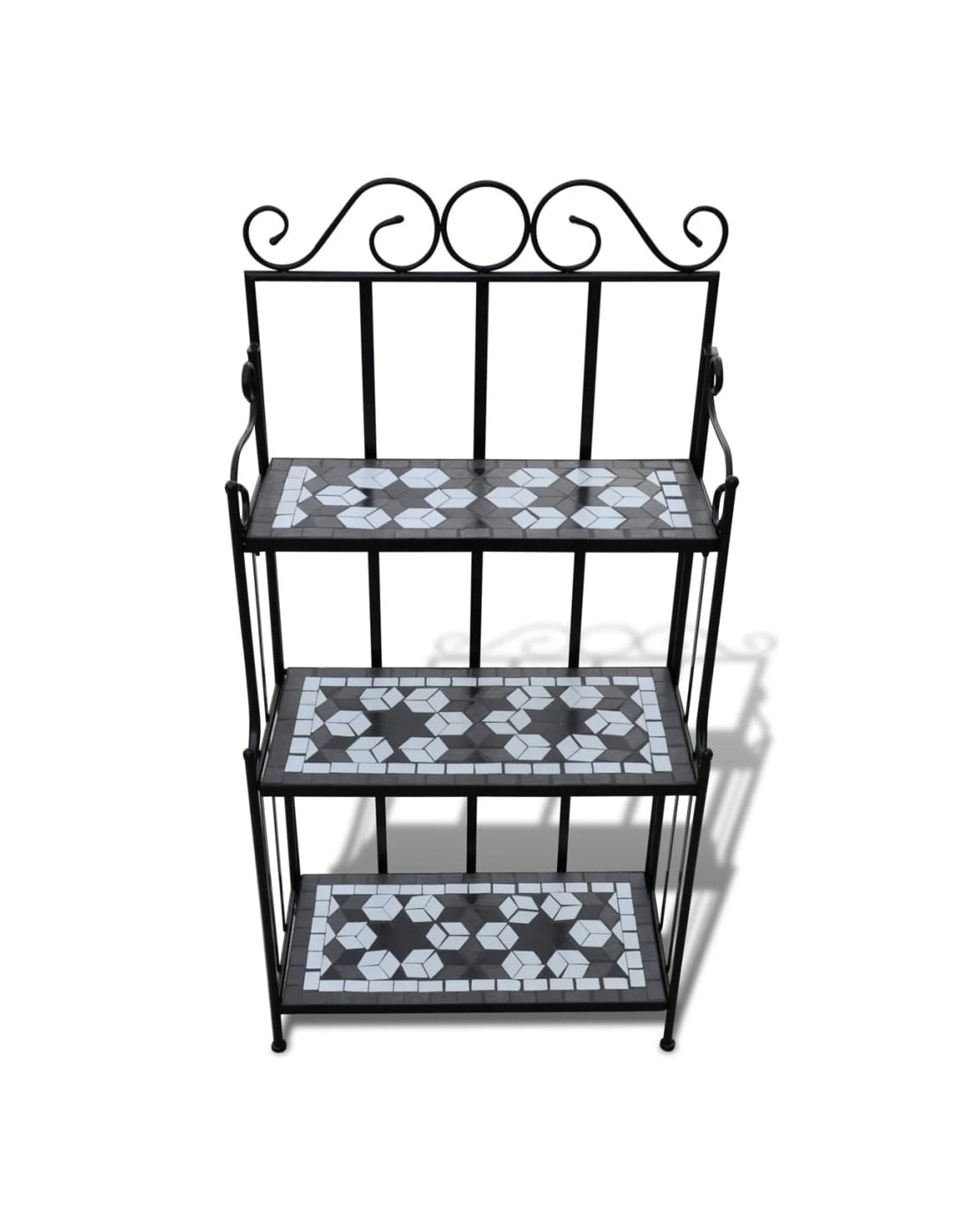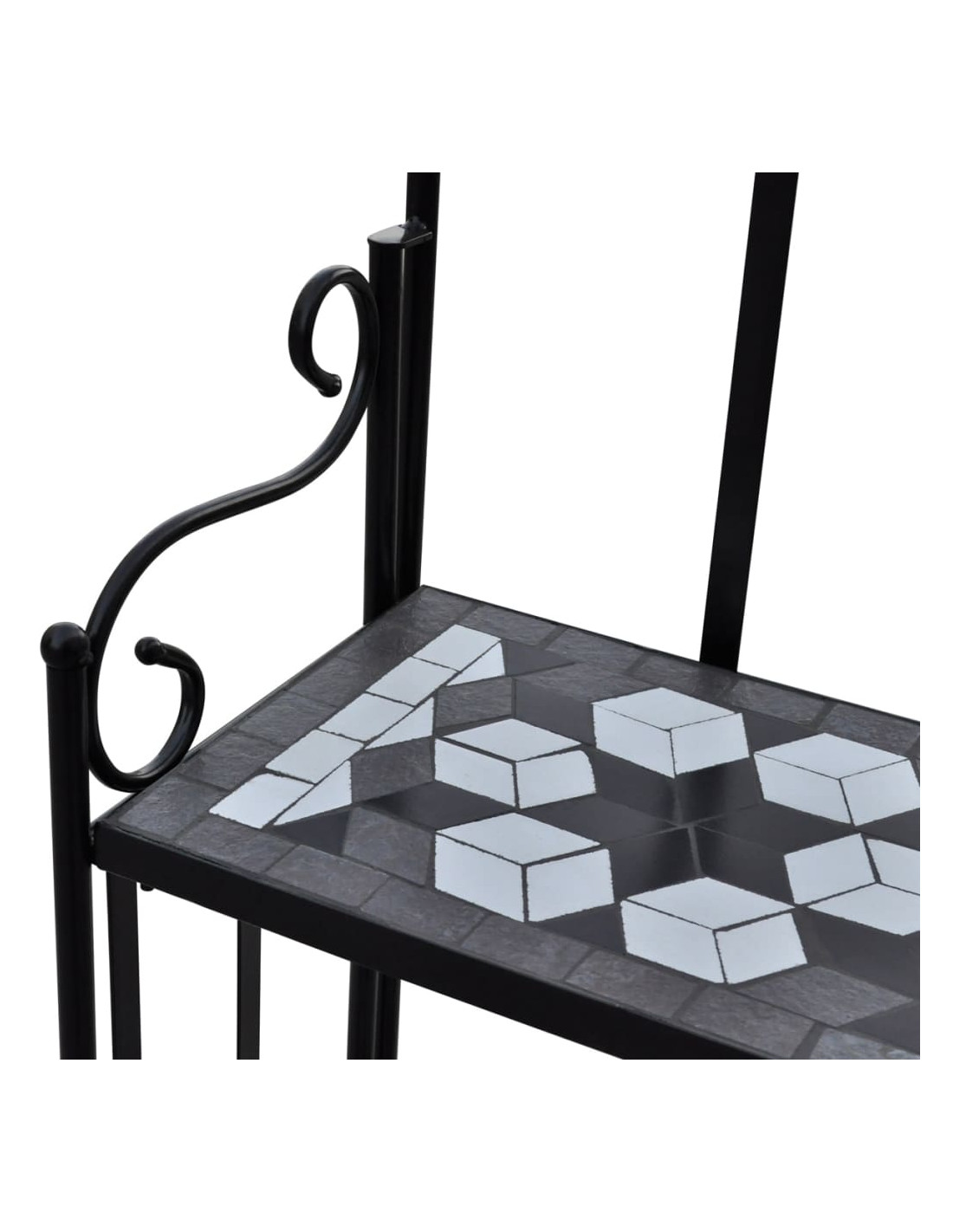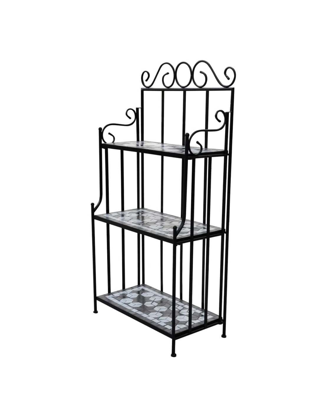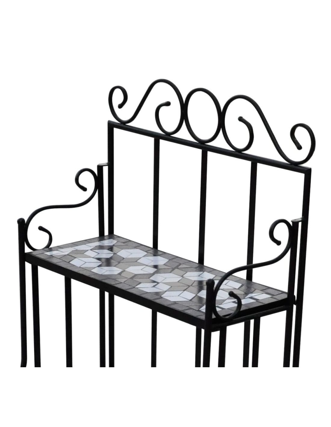 Questo supporto per piante presenta una struttura in ferro elegantemente curvato e 3 strati di ceramica con motivo a mosaico. Diventerà sicuramente un'attrazione nel vostro giardino, balcone, terrazza, ecc.