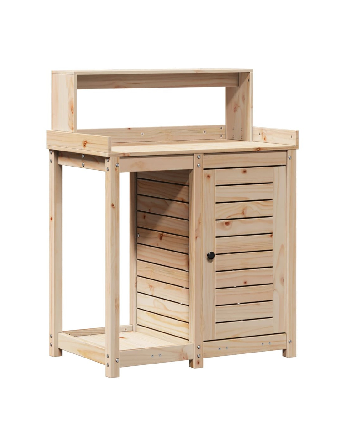 - Legno massello di pino: Il tavolo da invasatura è realizzato in legno massello di pino per garantire robustezza e stabilità. Il legno massello di pino è un bellissimo materiale naturale. Il legno di pino ha le venature dritte e i nodi conferiscono al materiale il suo caratteristico aspetto rustico.