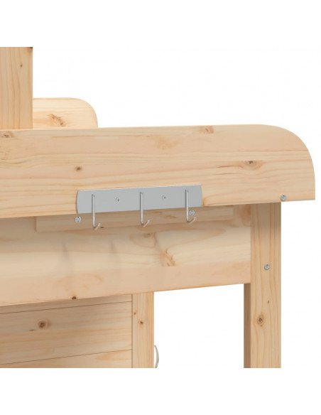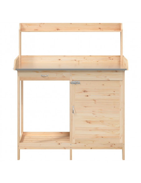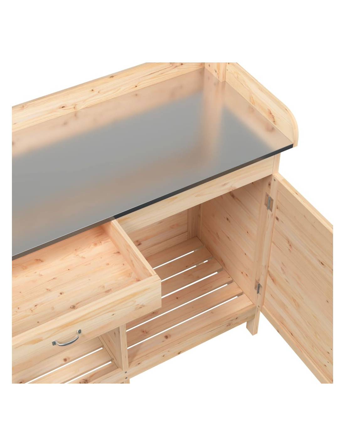 - Legno massello di abete: Il tavolo per l'invasatura è realizzato in legno massello di abete per garantire robustezza e stabilità. Il legno massello di abete è un materiale splendido e durevole che mantiene la sua integrità anche se esposto all'umidità. Non si secca e non si deforma, quindi è una scelta affidabile.