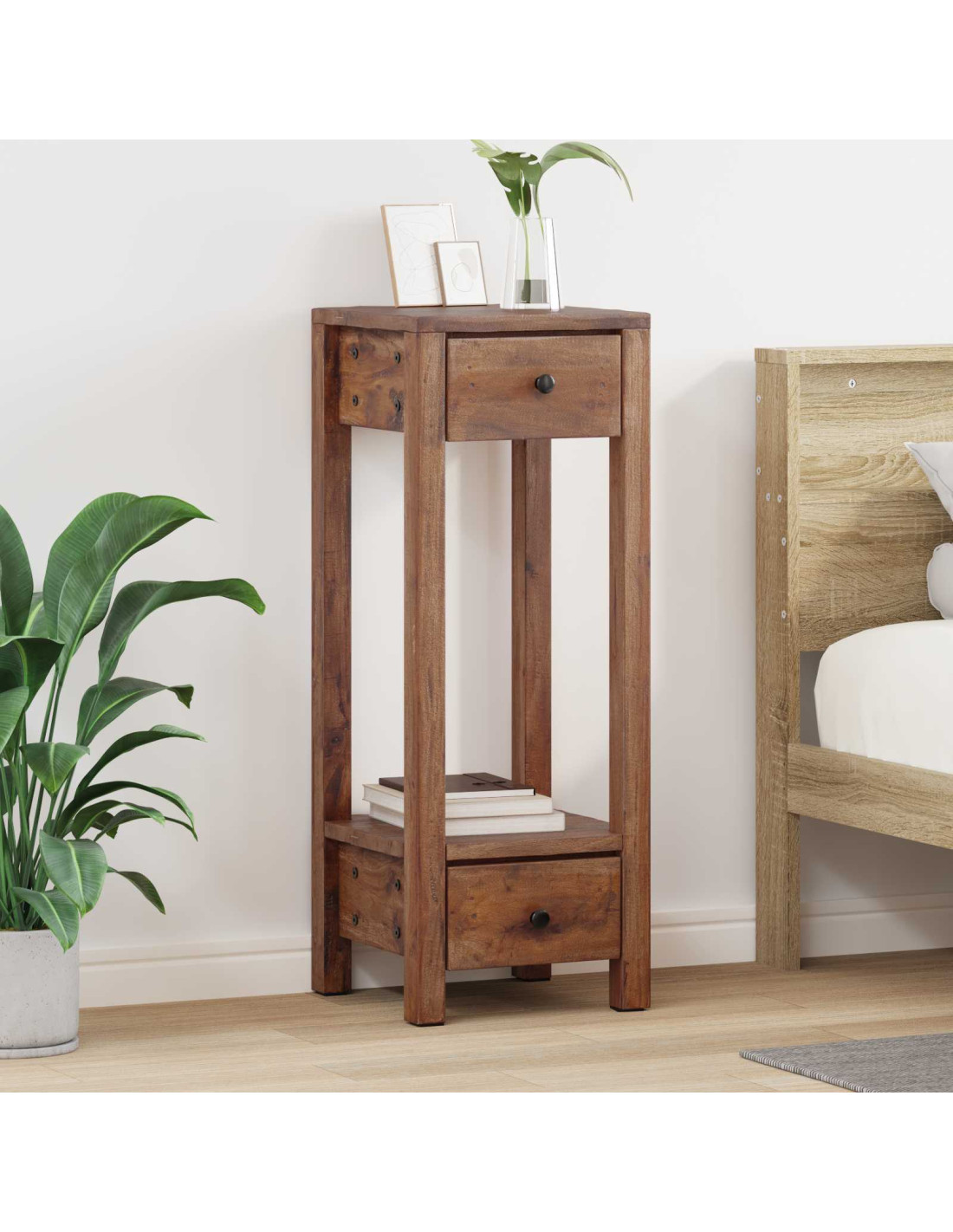 Questo supporto per piante rustico in legno di mogano massello è fatto per esaltare le tue piante con eleganza. Misura 30 x 30 x 80 cm e ha una finitura marrone ricca che aggiunge stile a qualsiasi giardino o terrazza. Il design rialzato offre molto spazio per le piante, mantenendo tutto in ordine. Perfetto per chi ama le piante, porta una combinazione di bellezza e funzionalità al tuo arredamento esterno.