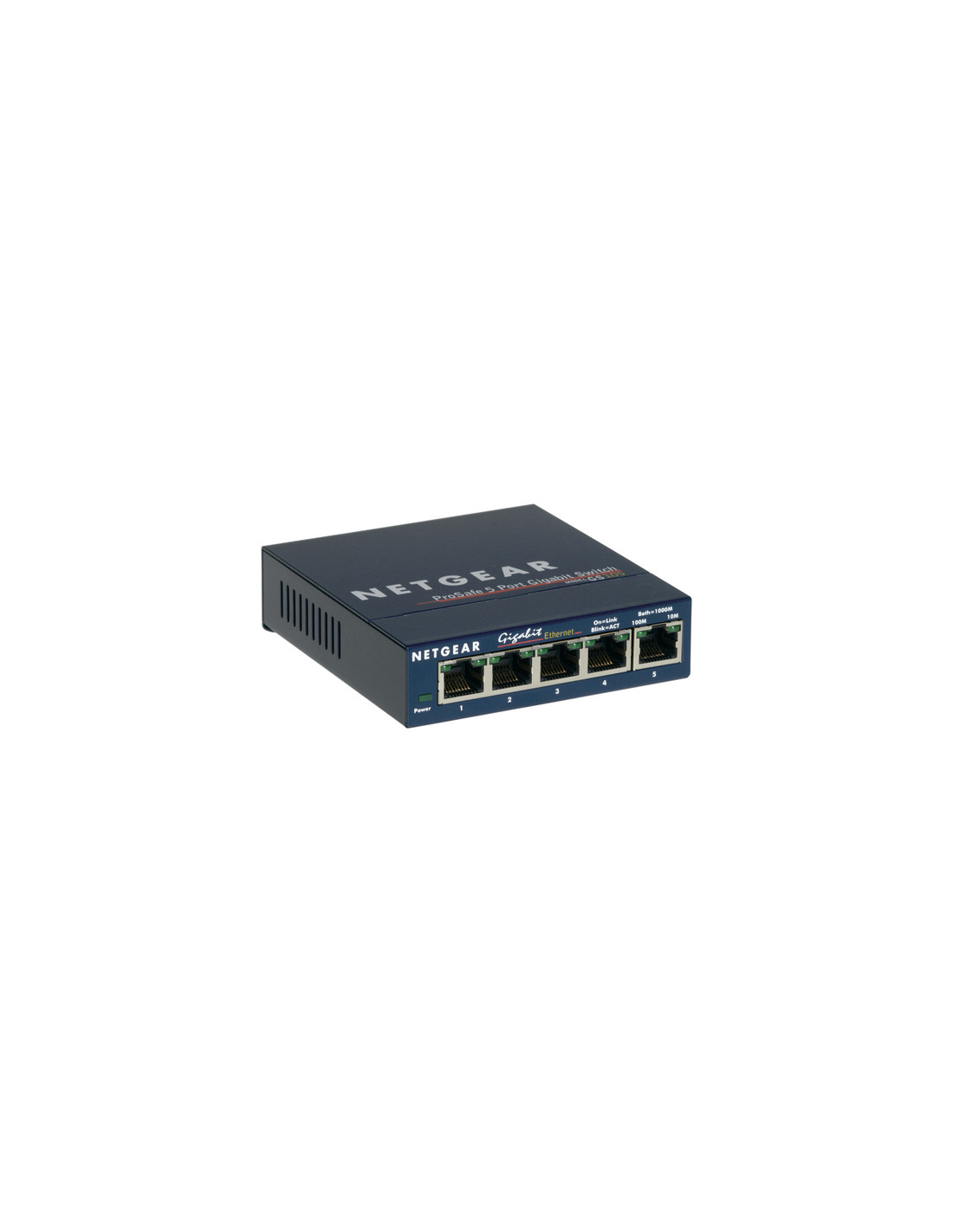 NETGEAR GS105. Tipo interruttore: Non gestito. Tipo di porte RJ-45: Gigabit Ethernet (10/100/1000), Quantità di porte RJ-45: 5. Full duplex. Dimensioni tavola MAC: 2000 voci, Capacità di commutazione: 10 Gbit/s. Standard di rete: IEEE 802.3, IEEE 802.3ab, IEEE 802.3i, IEEE 802.3u. Voltaggio input DC: 12 V. Connettore di alimentazione: Jack DC-ingresso