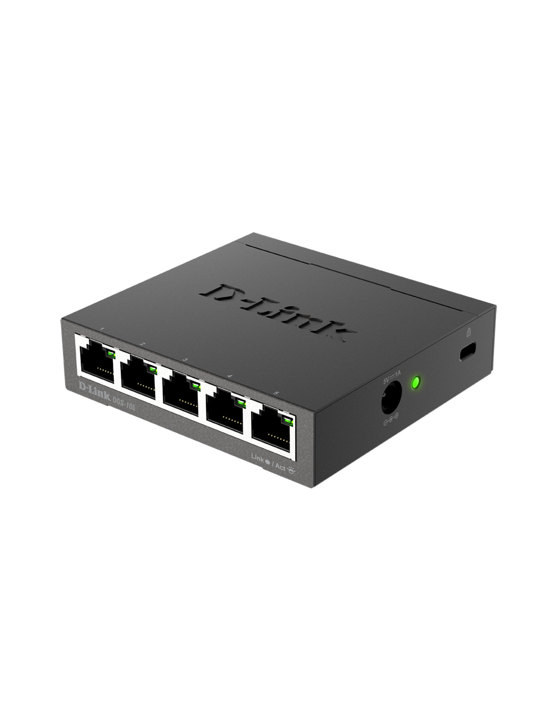 D-Link DGS-105. Tipo interruttore: Non gestito, Livello del commutatore: L2. Tipo di porte RJ-45: Gigabit Ethernet (10/100/1000), Quantità di porte RJ-45: 5. Full duplex. Dimensioni tavola MAC: 2000 voci, Capacità di commutazione: 10 Gbit/s. Standard di rete: IEEE 802.1p, IEEE 802.3, IEEE 802.3ab, IEEE 802.3az, IEEE 802.3u, IEEE 802.3x. Connettore di alimentazione: Jack DC-ingresso