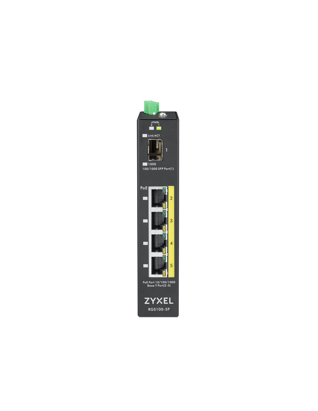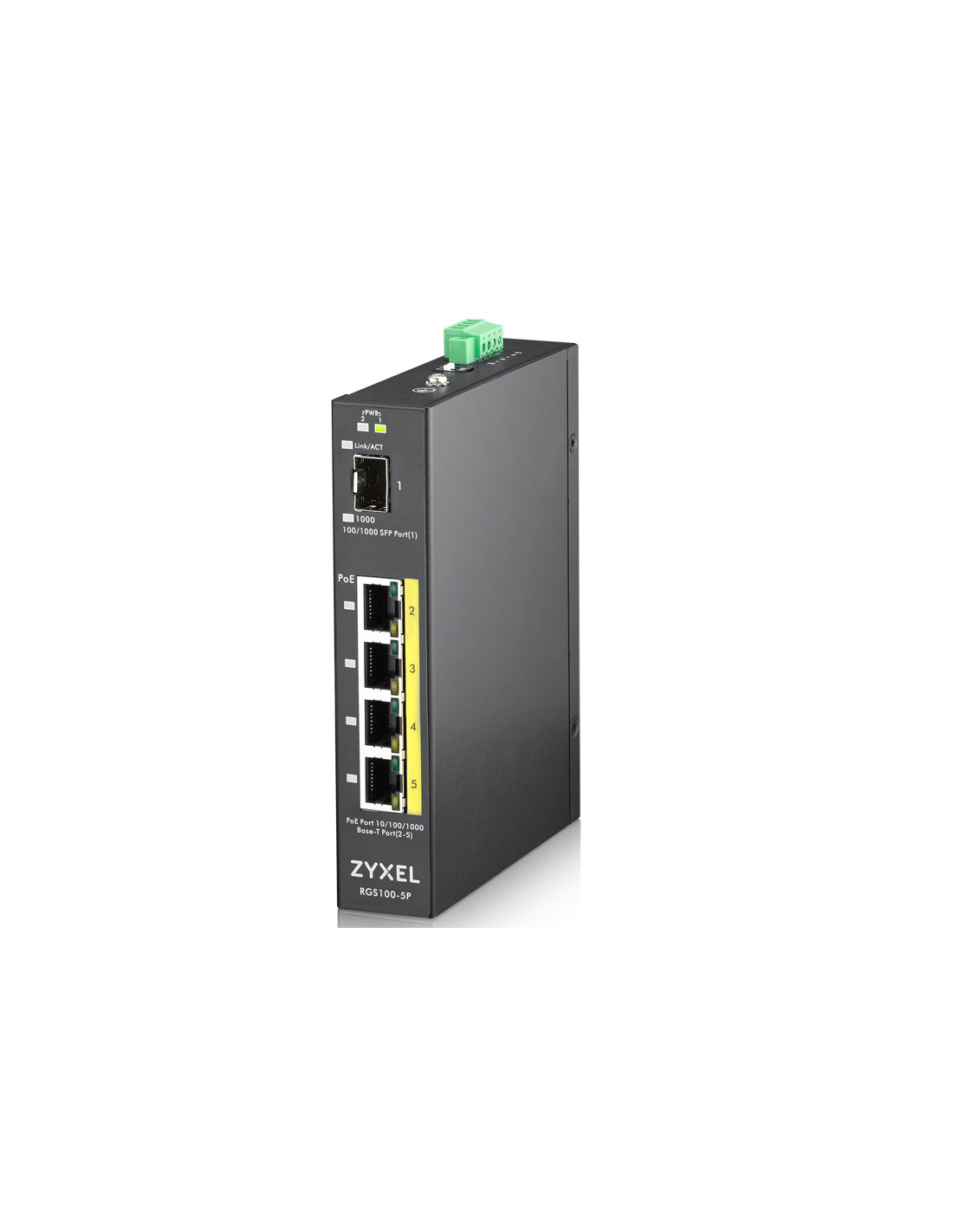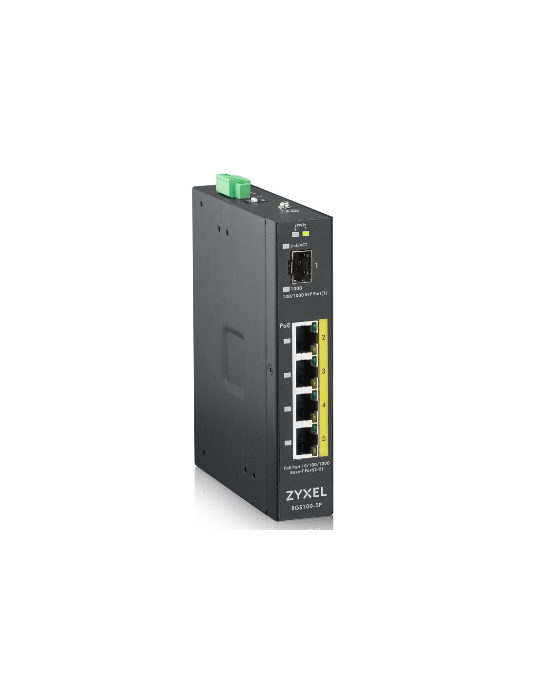 Zyxel RGS100-5P. Tipo interruttore: Non gestito, Livello del commutatore: L2. Tipo di porte RJ-45: Gigabit Ethernet (10/100/1000), Quantità di porte RJ-45: 4. Full duplex. Dimensioni tavola MAC: 2000 voci, Capacità di commutazione: 10 Gbit/s. Standard di rete: IEEE 802.1p, IEEE 802.3, IEEE 802.3ab, IEEE 802.3af, IEEE 802.3at, IEEE 802.3u, IEEE 802.3x, IEEE.... Voltaggio input DC: 12 - 58 V. Supporto Power over Ethernet (PoE). Montabile a parete, Montaggio rack