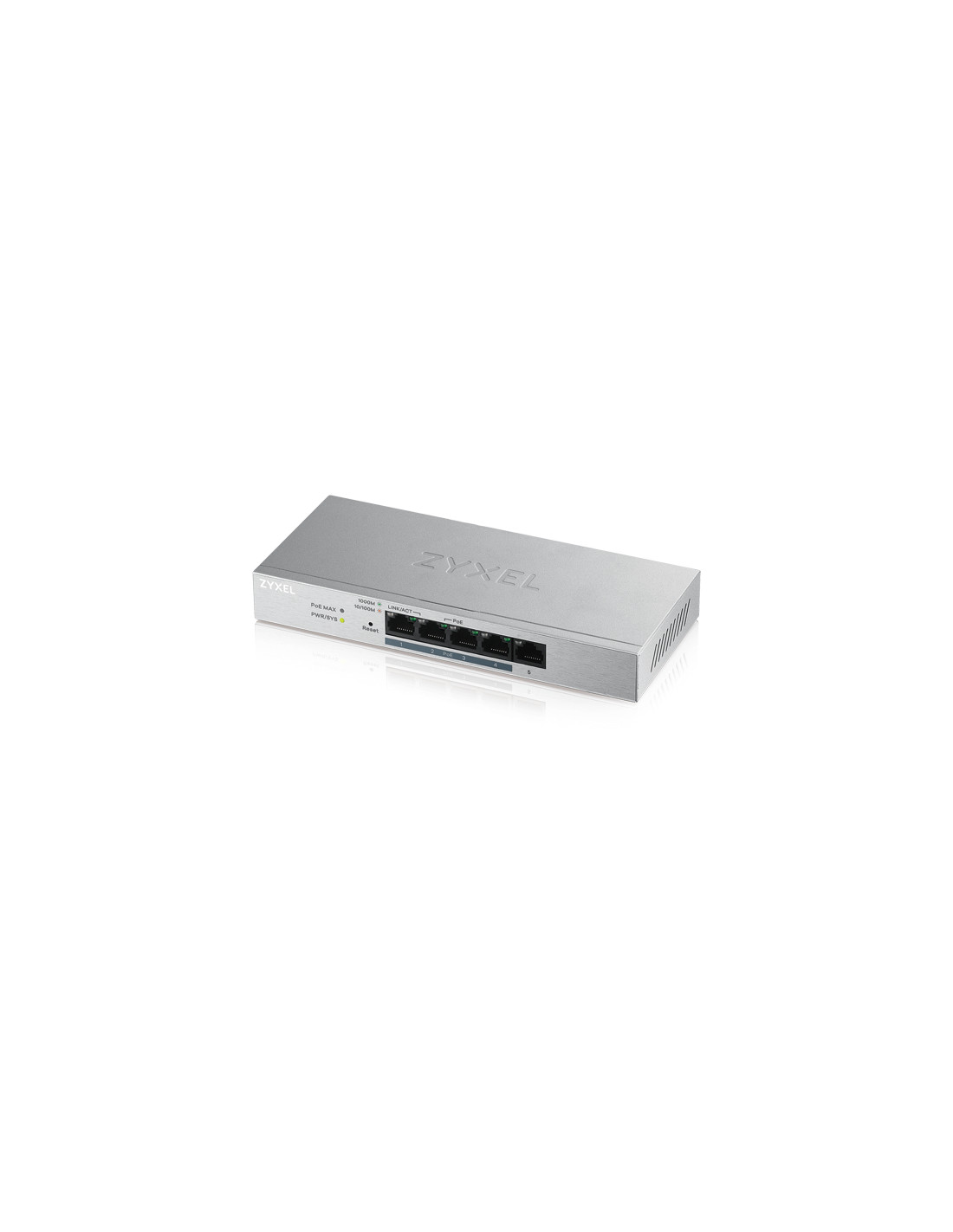Zyxel GS1200-5HP v2. Tipo interruttore: Gestito. Tipo di porte RJ-45: Gigabit Ethernet (10/100/1000), Quantità di porte RJ-45: 5. Full duplex. Dimensioni tavola MAC: 2000 voci, Capacità di commutazione: 10 Gbit/s. Standard di rete: IEEE 802.3ab, IEEE 802.3af, IEEE 802.3at, IEEE 802.3az, IEEE 802.3p, IEEE 802.3u, IEEE 802.3x,.... Supporto Power over Ethernet (PoE)