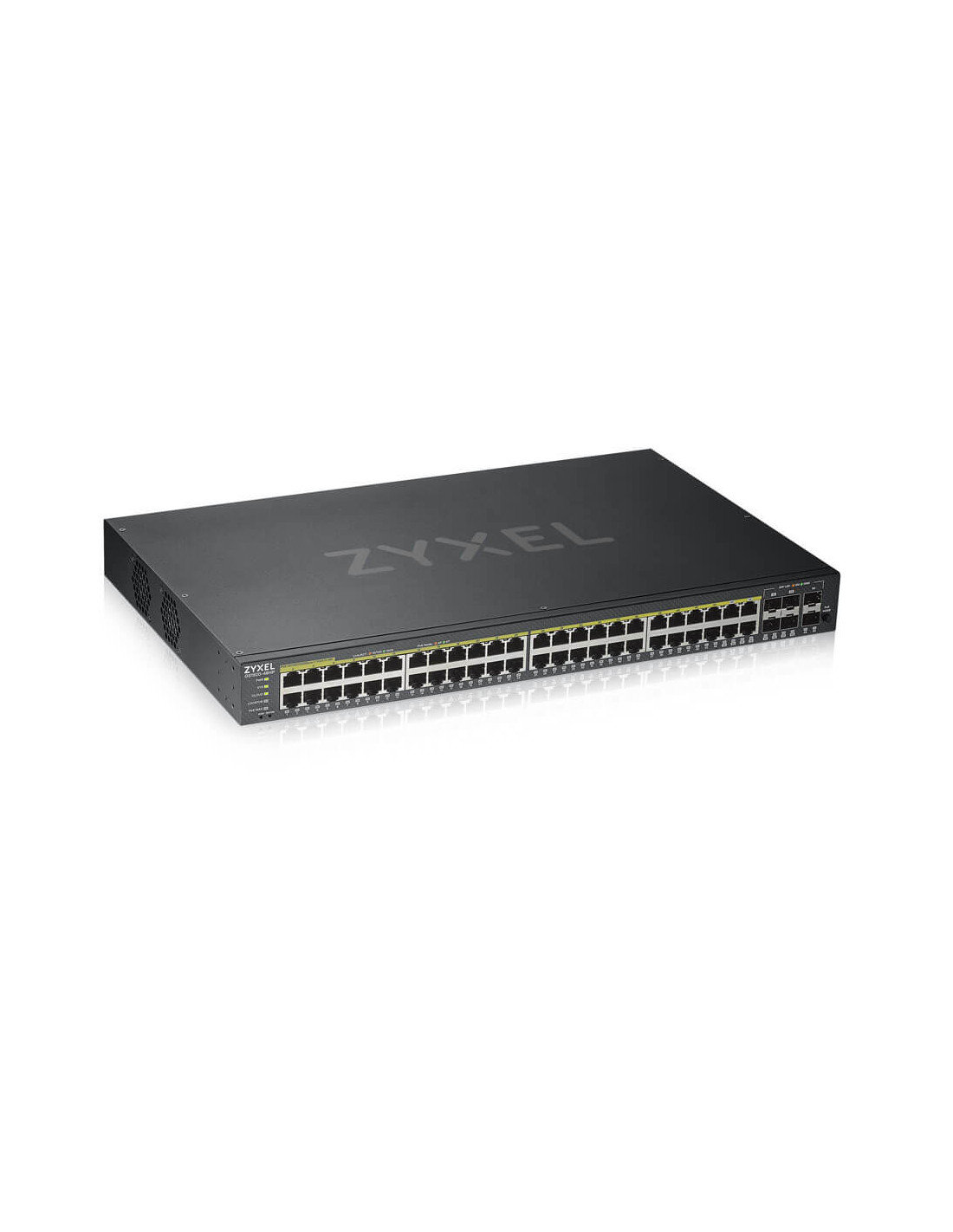 Zyxel GS1920-48HPV2. Tipo interruttore: Gestito. Tipo di porte RJ-45: Gigabit Ethernet (10/100/1000), Quantità di porte RJ-45: 44. Dimensioni tavola MAC: 16000 voci, Capacità di commutazione: 100 Gbit/s. Standard di rete: IEEE 802.1D, IEEE 802.1Q, IEEE 802.1ab, IEEE 802.1p, IEEE 802.1s, IEEE 802.1w, IEEE 802.1x, IEEE.... Supporto Power over Ethernet (PoE)