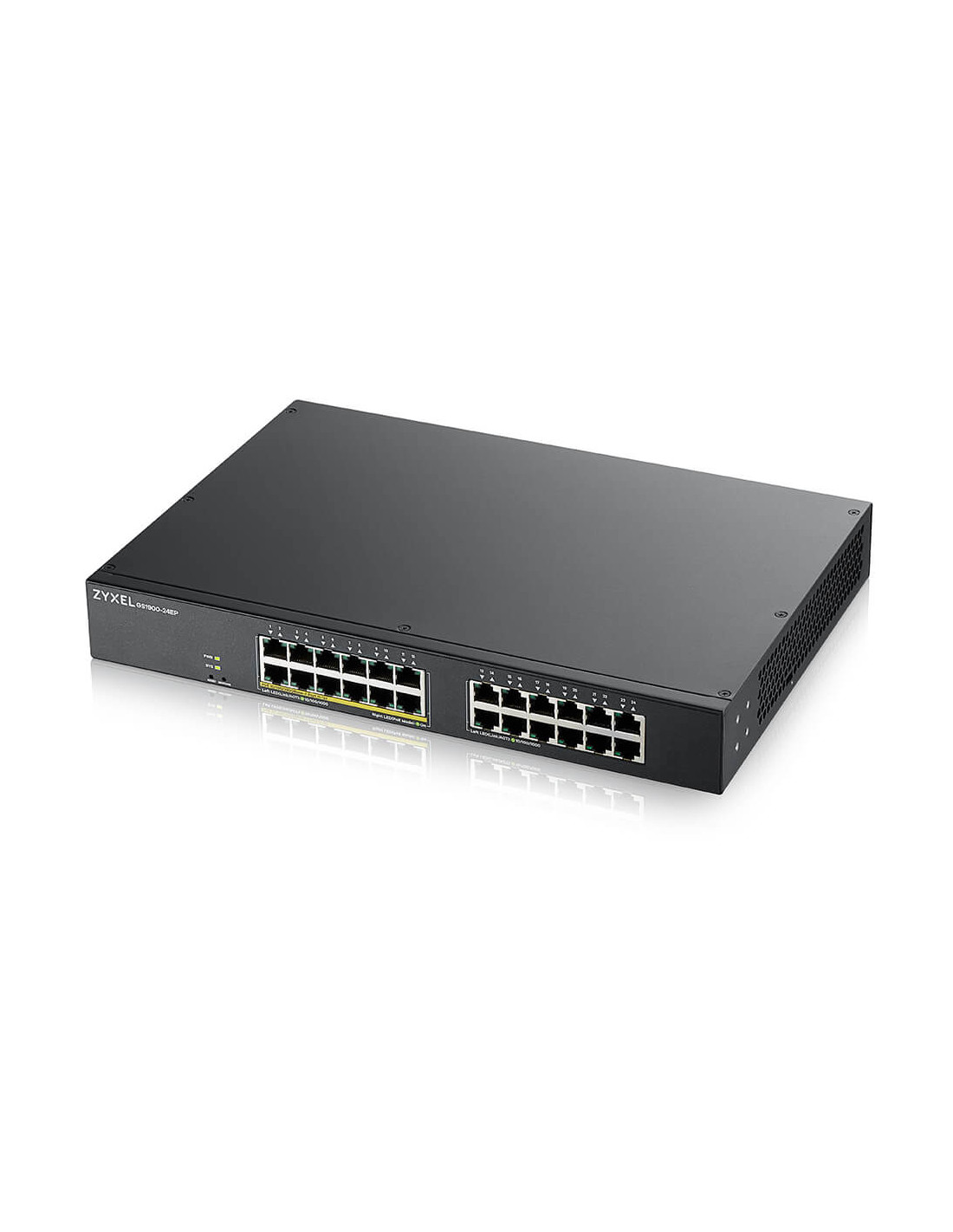 Zyxel GS1900-24EP. Tipo interruttore: Gestito, Livello del commutatore: L2. Tipo di porte RJ-45: Gigabit Ethernet (10/100/1000), Quantità di porte RJ-45: 24. Full duplex. Dimensioni tavola MAC: 8000 voci, Capacità di commutazione: 48 Gbit/s. Standard di rete: IEEE 802.1D, IEEE 802.1ab, IEEE 802.1af, IEEE 802.1s, IEEE 802.1w, IEEE 802.3at, IEEE 802.3az,.... Connettore di alimentazione: Jack di ingresso AC. Supporto Power over Ethernet (PoE). Montaggio rack