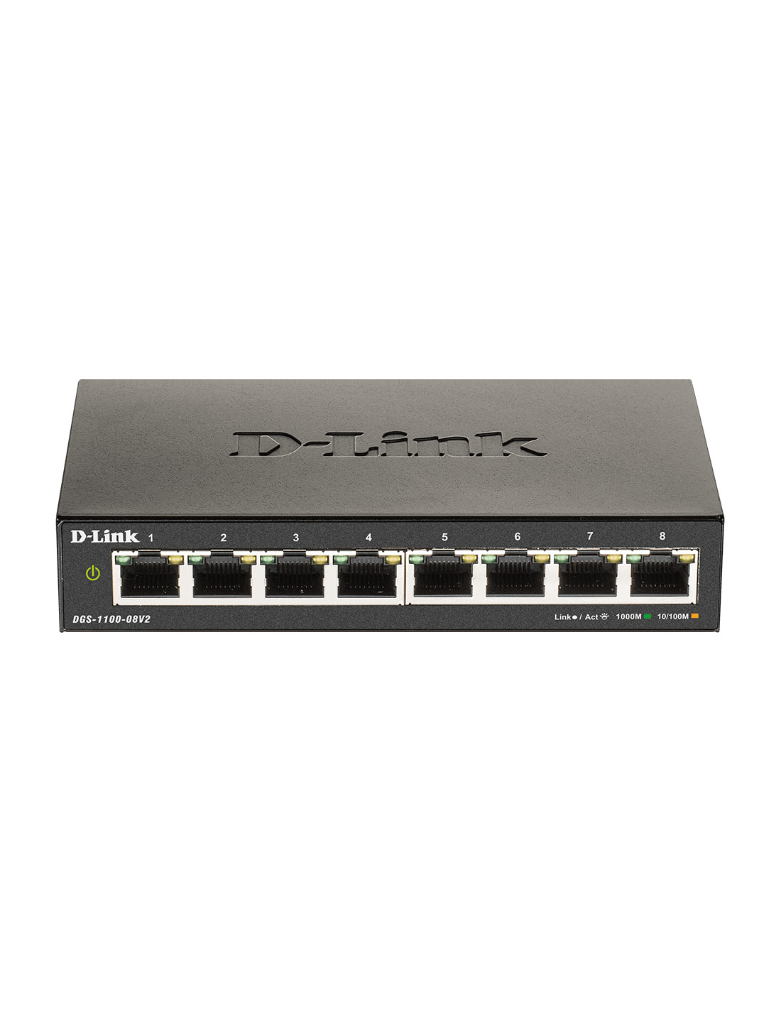 D-Link DGS-1100-08V2. Tipo interruttore: Gestito, Livello del commutatore: L2. Tipo di porte RJ-45: Gigabit Ethernet (10/100/1000), Quantità di porte RJ-45: 8. Dimensioni tavola MAC: 4000 voci, Capacità di commutazione: 16 Gbit/s. Voltaggio input DC: 5 V