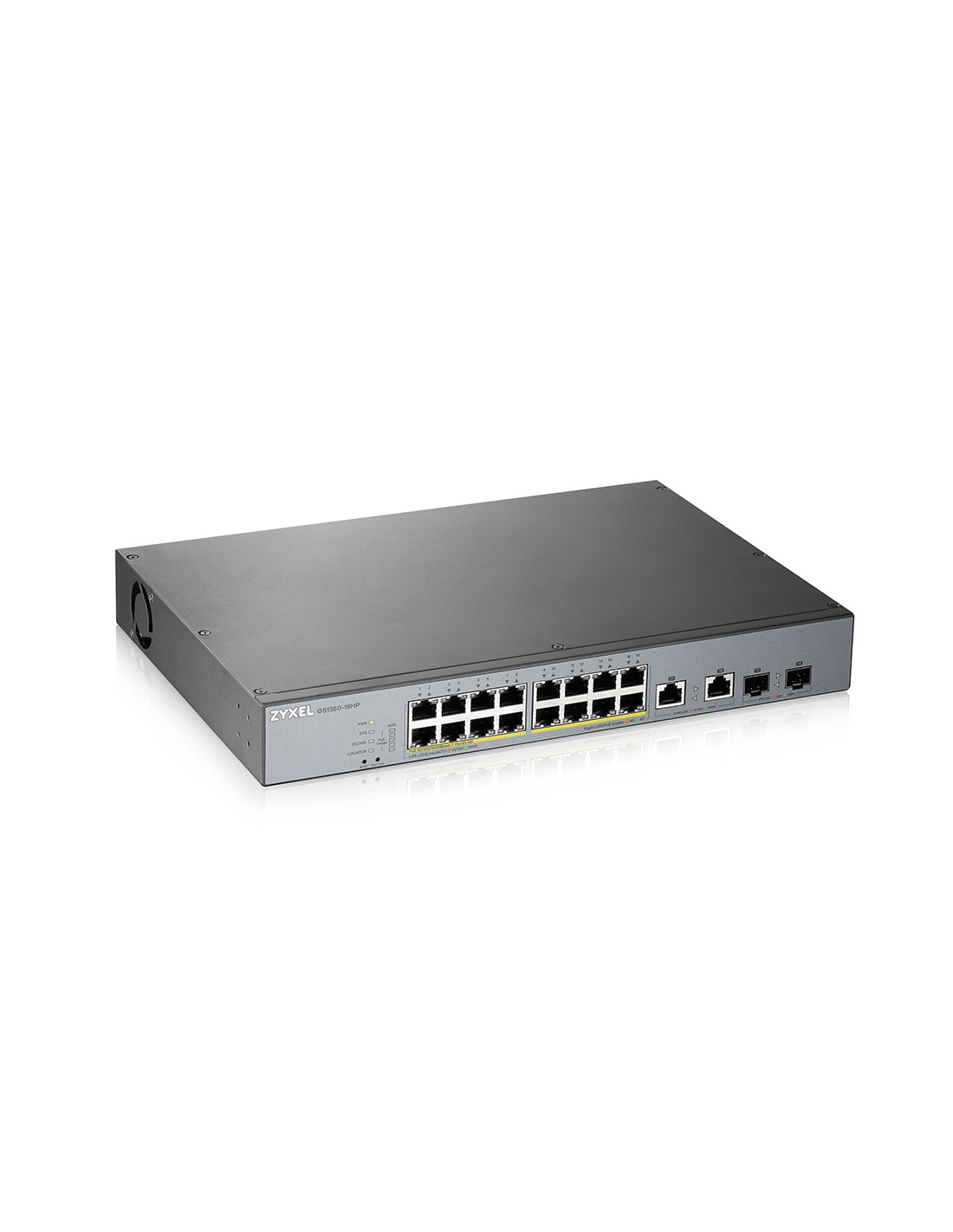 Zyxel GS1350-18HP-EU0101F. Tipo interruttore: Gestito, Livello del commutatore: L2. Tipo di porte RJ-45: Gigabit Ethernet (10/100/1000), Quantità di porte RJ-45: 16. Dimensioni tavola MAC: 8000 voci, Capacità di commutazione: 36 Gbit/s. Standard di rete: IEEE 802.1D, IEEE 802.1Q, IEEE 802.1ab, IEEE 802.1p, IEEE 802.1w, IEEE 802.3, IEEE 802.3ad, IEEE.... Supporto Power over Ethernet (PoE). Montaggio rack