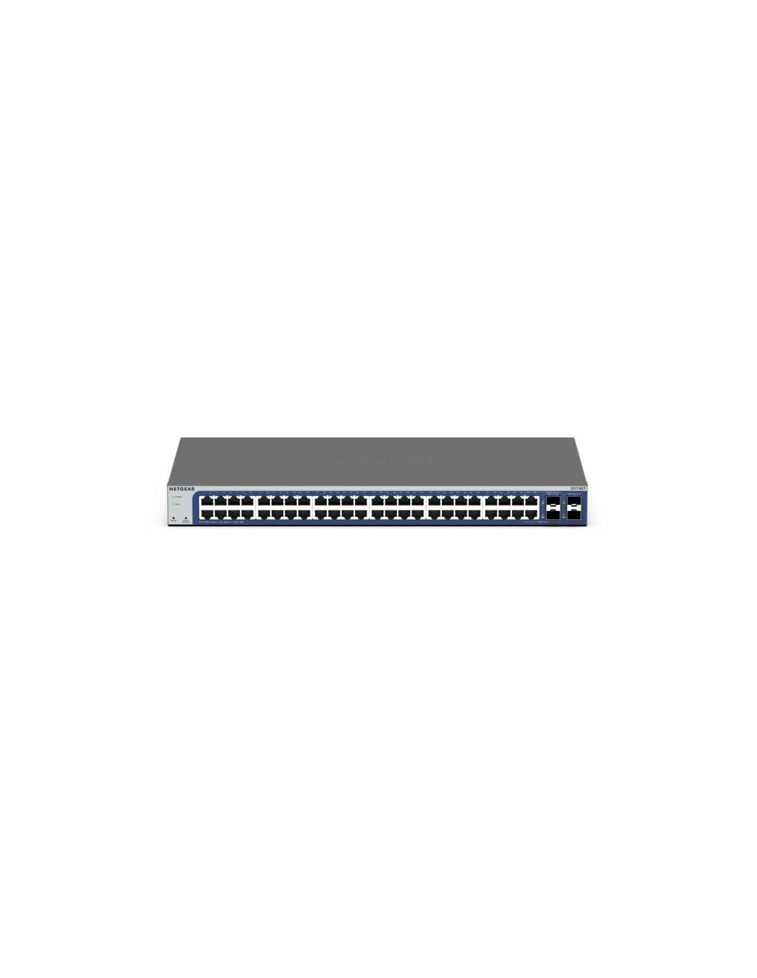 NETGEAR GS748Tv6. Tipo interruttore: Gestito, Livello del commutatore: L2/L3/L4. Tipo di porte RJ-45: Gigabit Ethernet (10/100/1000), Quantità di porte RJ-45: 48. Full duplex. Dimensioni tavola MAC: 16000 voci, Capacità di commutazione: 100 Gbit/s. Standard di rete: IEEE 802.1D, IEEE 802.1as, IEEE 802.1s, IEEE 802.1v, IEEE 802.3, IEEE 802.3ab, IEEE 802.3ad, IEEE.... Montaggio rack