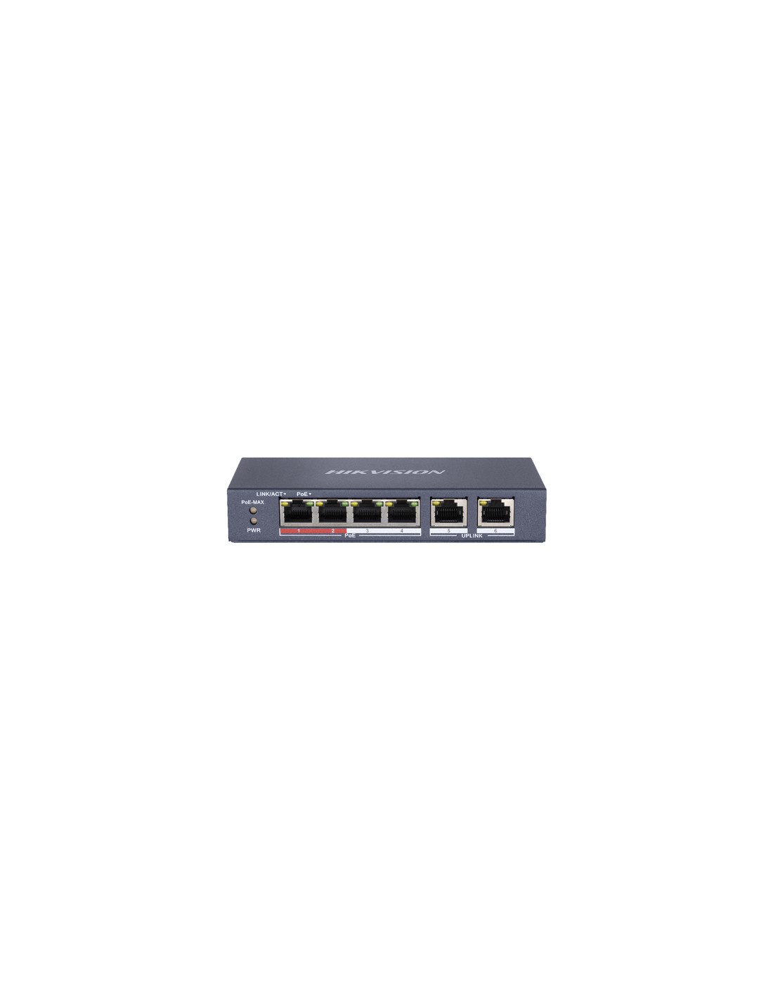 Hikvision DS-3E0106P-E/M. Tipo interruttore: Non gestito. Tipo di porte RJ-45: Fast Ethernet (10/100), Quantità di porte RJ-45: 6. Full duplex. Dimensioni tavola MAC: 2000 voci, Capacità di commutazione: 1,2 Gbit/s. Standard di rete: IEEE 802.3, IEEE 802.3af, IEEE 802.3at, IEEE 802.3u, IEEE 802.3x. Voltaggio input DC: 48 V. Supporto Power over Ethernet (PoE). Montabile a parete, Fattore di forma: Montaggio da desktop/parete