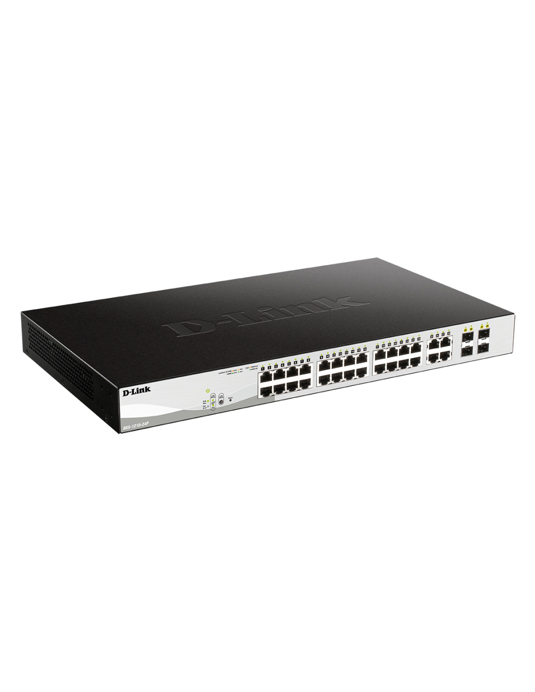 D-Link DGS-1210-24P. Tipo interruttore: Gestito, Livello del commutatore: L2. Tipo di porte RJ-45: Gigabit Ethernet (10/100/1000), Quantità di porte RJ-45: 24. Capacità di commutazione: 56 Gbit/s. Standard di rete: IEEE 802.3af, IEEE 802.3at. Supporto Power over Ethernet (PoE). Montaggio rack