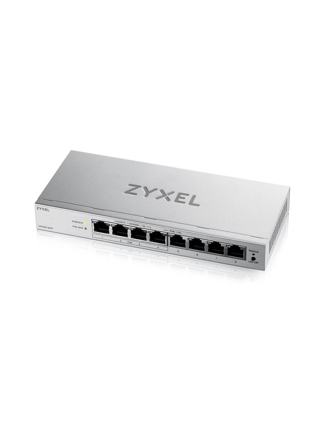 Zyxel GS1200-8HPV3. Tipo interruttore: Gestito, Livello del commutatore: L2. Tipo di porte RJ-45: Gigabit Ethernet (10/100/1000), Quantità di porte RJ-45: 8. Full duplex. Dimensioni tavola MAC: 4000 voci, Capacità di commutazione: 16 Gbit/s. Standard di rete: IEEE 802.1Q, IEEE 802.1p, IEEE 802.3, IEEE 802.3ab, IEEE 802.3ad, IEEE 802.3at, IEEE 802.3az, IEEE.... Connettore di alimentazione: Jack DC-ingresso. Supporto Power over Ethernet (PoE). Fattore di forma: Desktop