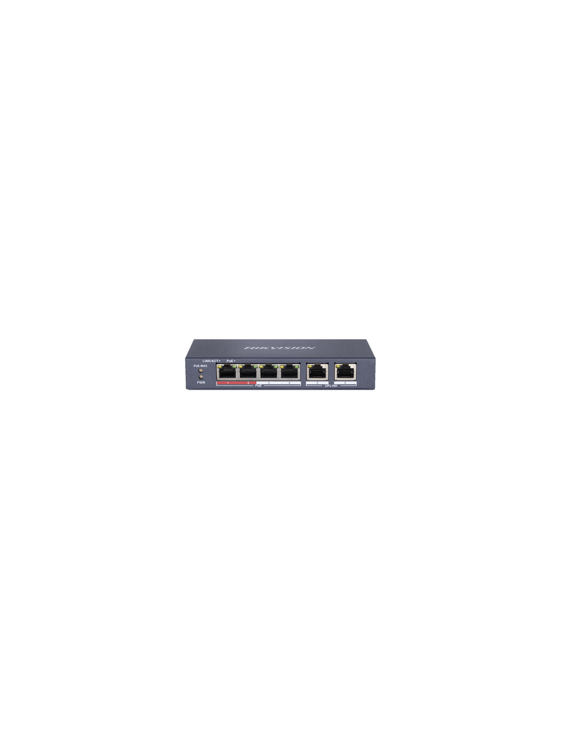 Hikvision Digital Technology DS-3E0106P-E/M. Tipo interruttore: Non gestito. Tipo di porte RJ-45: Fast Ethernet (10/100), Quantità di porte RJ-45: 6. Full duplex. Dimensioni tavola MAC: 4000 voci, Capacità di commutazione: 1,6 Gbit/s. Standard di rete: IEEE 802.3, IEEE 802.3af, IEEE 802.3at, IEEE 802.3u, IEEE 802.3x. Voltaggio input DC: 48 V. Supporto Power over Ethernet (PoE)