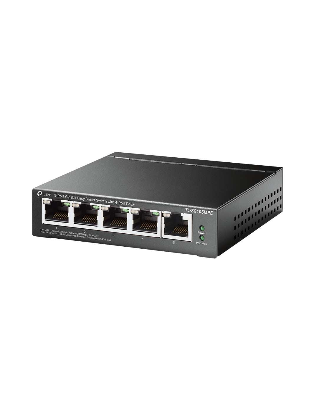 TP-Link TL-SG105MPE. Livello del commutatore: L2. Tipo di porte RJ-45: Gigabit Ethernet (10/100/1000), Quantità di porte RJ-45: 5. Dimensioni tavola MAC: 2000 voci, Capacità di commutazione: 10 Gbit/s. Standard di rete: IEEE 802.1Q, IEEE 802.1p, IEEE 802.3ab, IEEE 802.3af, IEEE 802.3at, IEEE 802.3i, IEEE 802.3u, IEEE.... Voltaggio input DC: 53.5 V. Supporto Power over Ethernet (PoE)