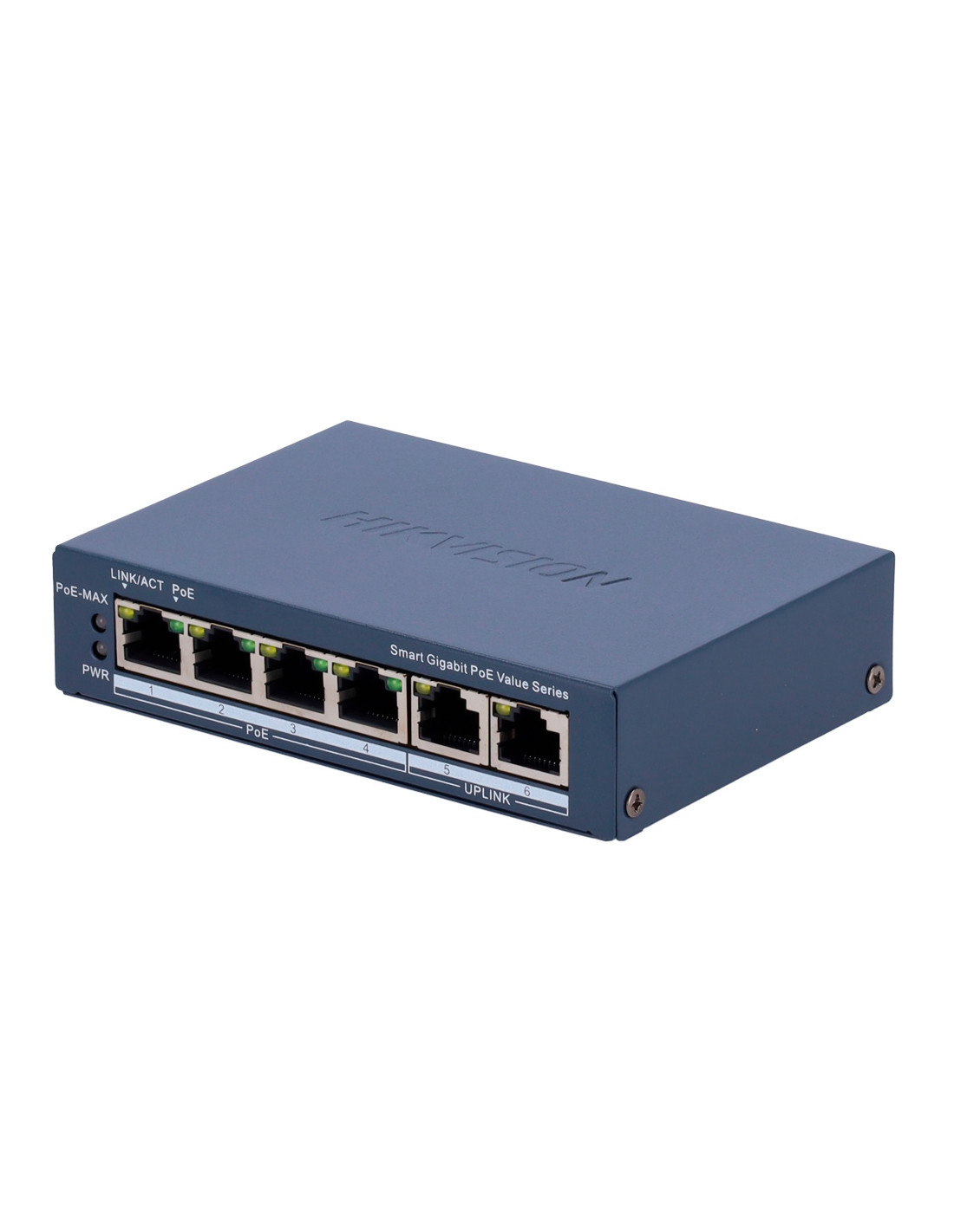 SWITCH HIKVISION SMART MANAGED POE GIGABIT L2, 4 GIGABIT RJ45 POE PORTS, 1 GIGABIT RJ45 PORT, 1 GIGA