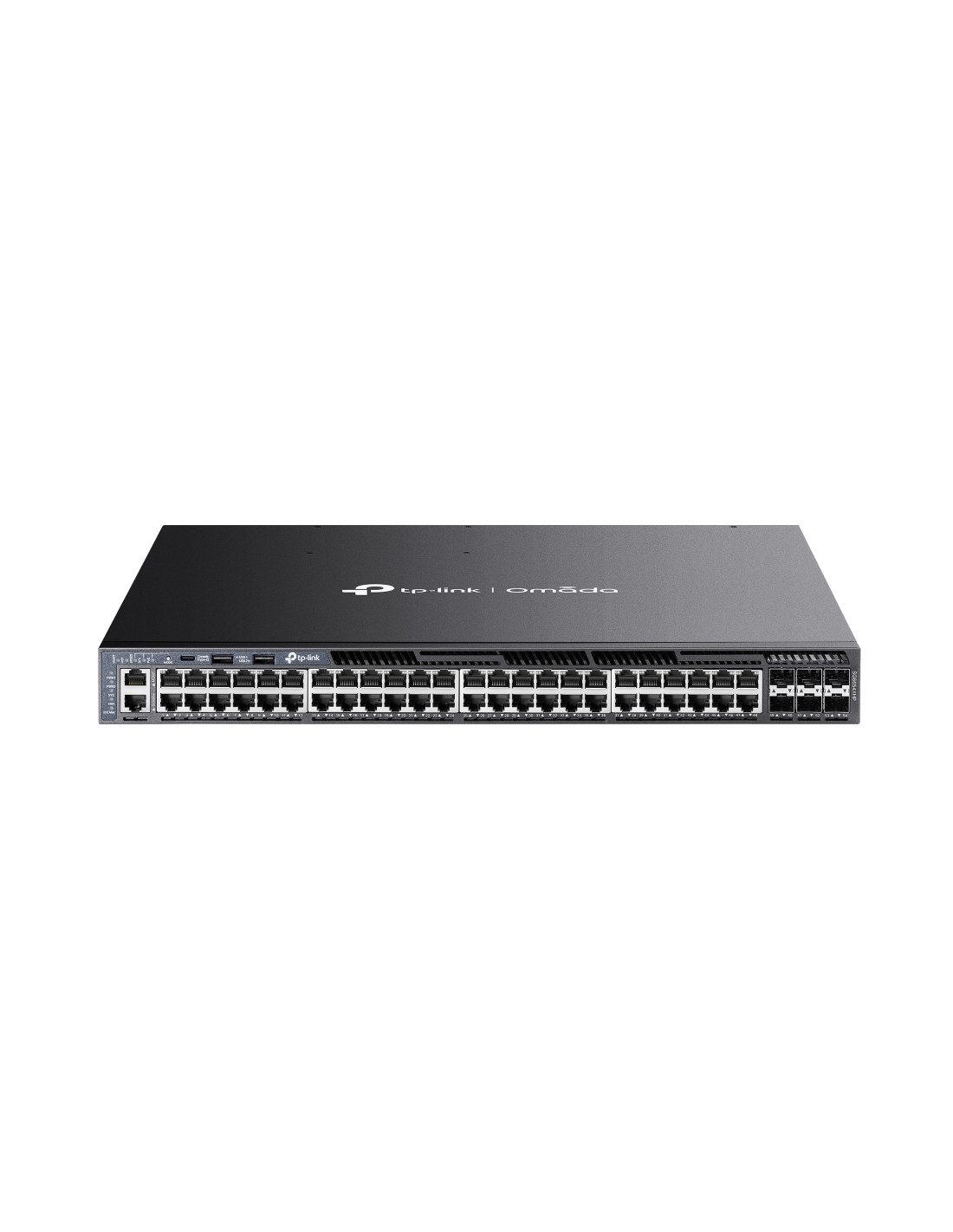 TP-Link Omada SG6654XHP. Tipo interruttore: Gestito, Livello del commutatore: L3. Tipo di porte RJ-45: Gigabit Ethernet (10/100/1000), Quantità di porte RJ-45: 48, Quantità porte USB 2.0: 2, Console port: RJ-45/USB Type-C. Dimensioni tavola MAC: 32000 voci, Capacità di commutazione: 216 Gbit/s. Standard di rete: IEEE 802.1Q, IEEE 802.1p, IEEE 802.3x. Supporto Power over Ethernet (PoE). Montaggio rack, Fattore di forma: 1U