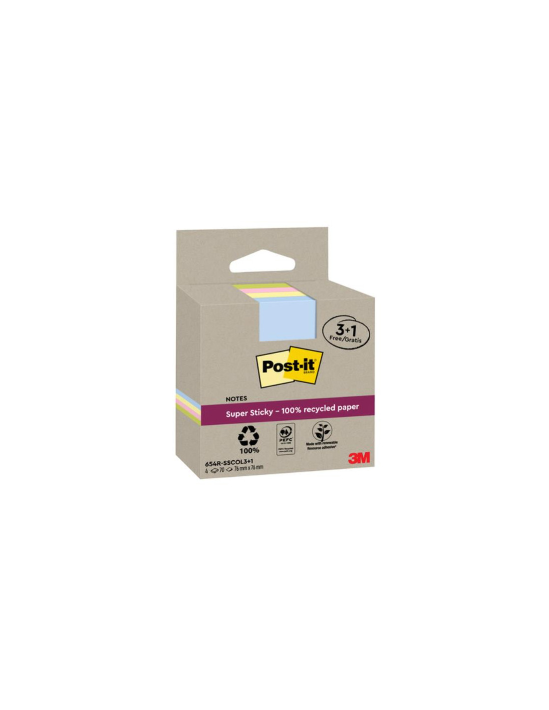 Foglietti Post-it Super Sticky 100 Riciclati colori assortiti 76 mm x 76 mm 14 bloc. + 4 gratis da 70 fogli 8/ctn -100 PEFC