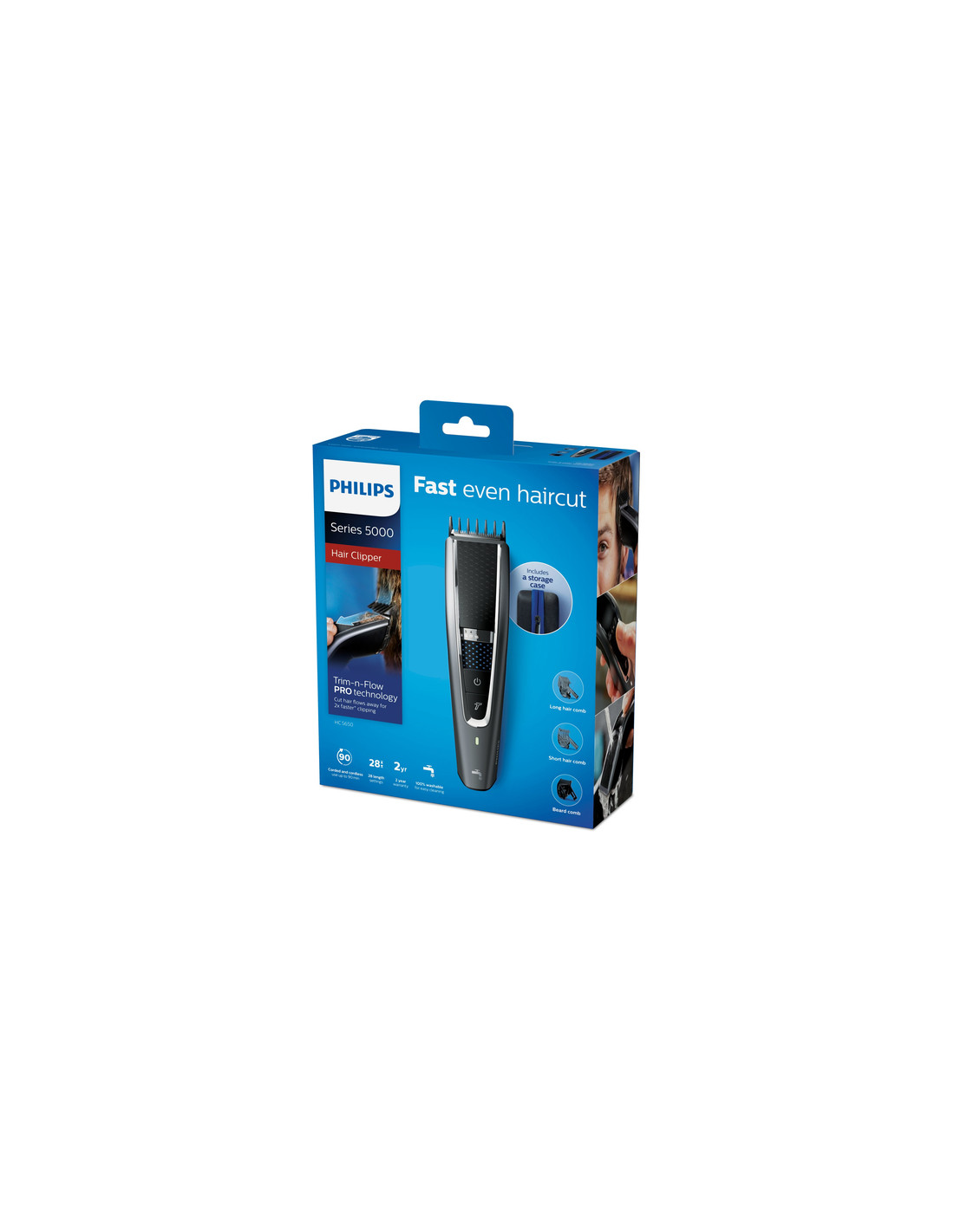 Ottieni un taglio più uniforme grazie al regolacapelli Philips serie 5000 con tecnologia DualCut e Trim-n-Flow Pro. Il nuovo design del pettine evita che capelli di qualsiasi lunghezza rimangano incastrati, così potrai rifinire il tuo stile in una sola passata.