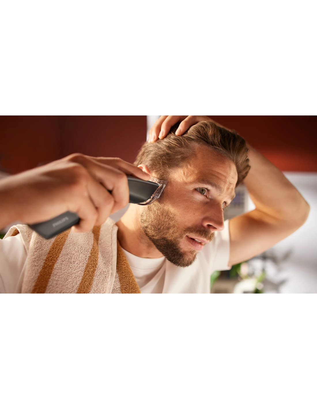 Ottieni un taglio più uniforme grazie al regolacapelli Philips serie 5000 con tecnologia DualCut e Trim-n-Flow Pro. Il nuovo design del pettine evita che capelli di qualsiasi lunghezza rimangano incastrati, così potrai rifinire il tuo stile in una sola passata.
