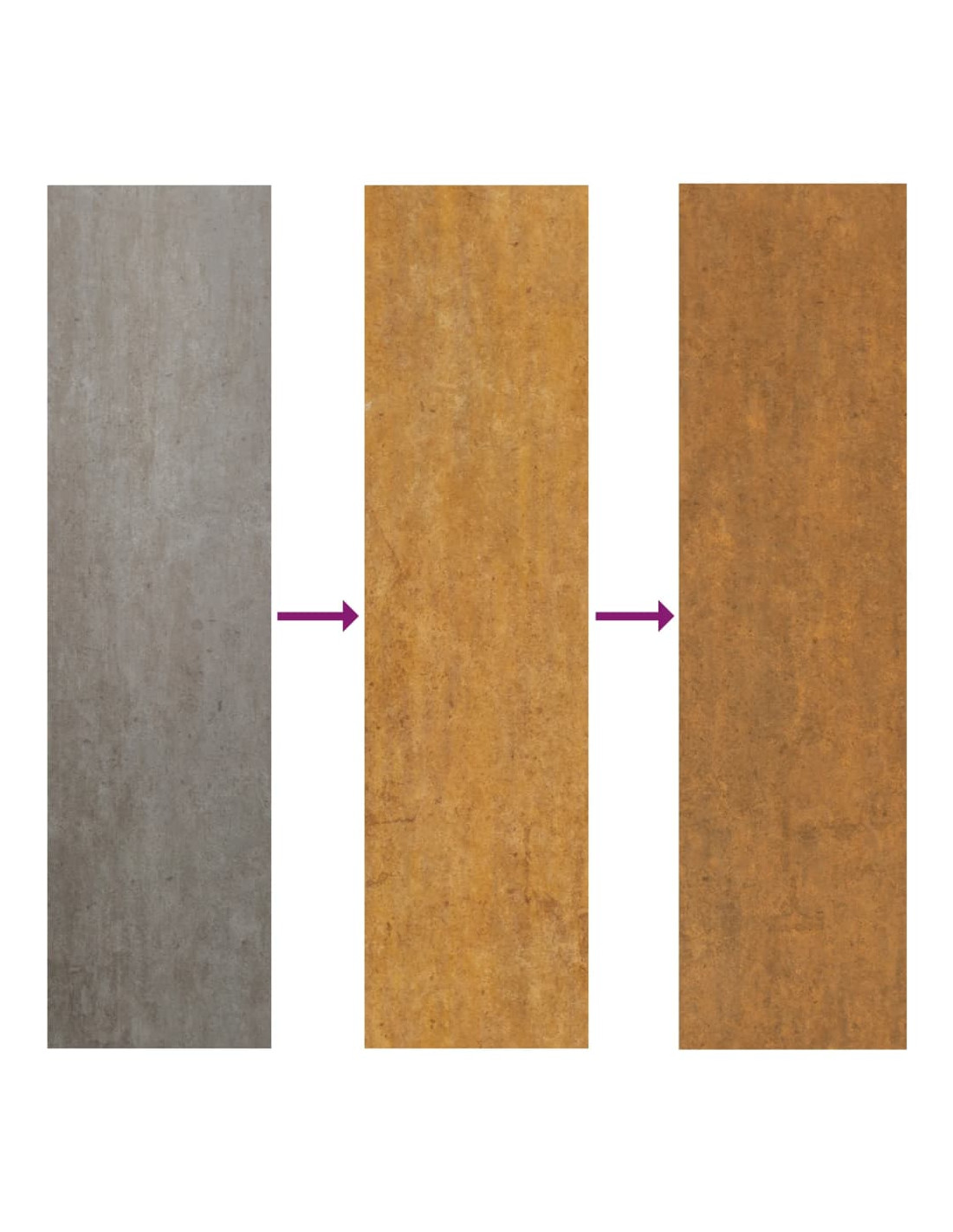 - Questo prodotto non è ancora arrugginito e presenta un normale colore metallico quando lo ricevete, ma la ruggine si svilupperà nel tempo. Potete accelerare il processo di arrugginimento spruzzando dell'acqua saponata o dell'acqua salata. Per non macchiare i vestiti, evitate il contatto con lo strato di ruggine che si sta sviluppando.