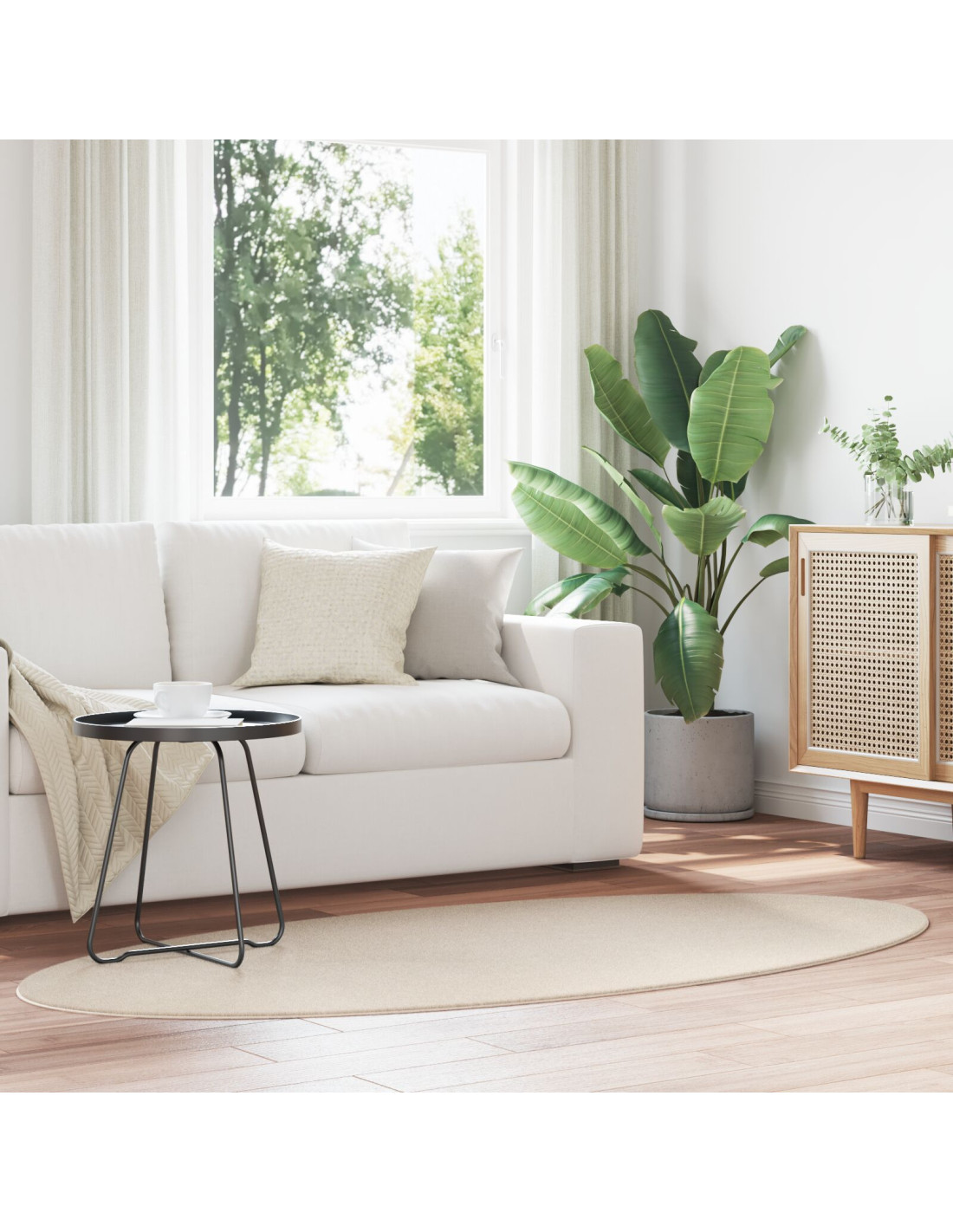 Questo tappeto in poliestere aggiunge un tocco contemporaneo in vari ambienti della tua casa. Con la sua forma ovale e il materiale al 100% in poliestere, è un'ottima aggiunta per corridoi o soggiorni. Il design moderno, insieme a funzionalità come il fondo antiscivolo, lo rende eccellente per ogni situazione.