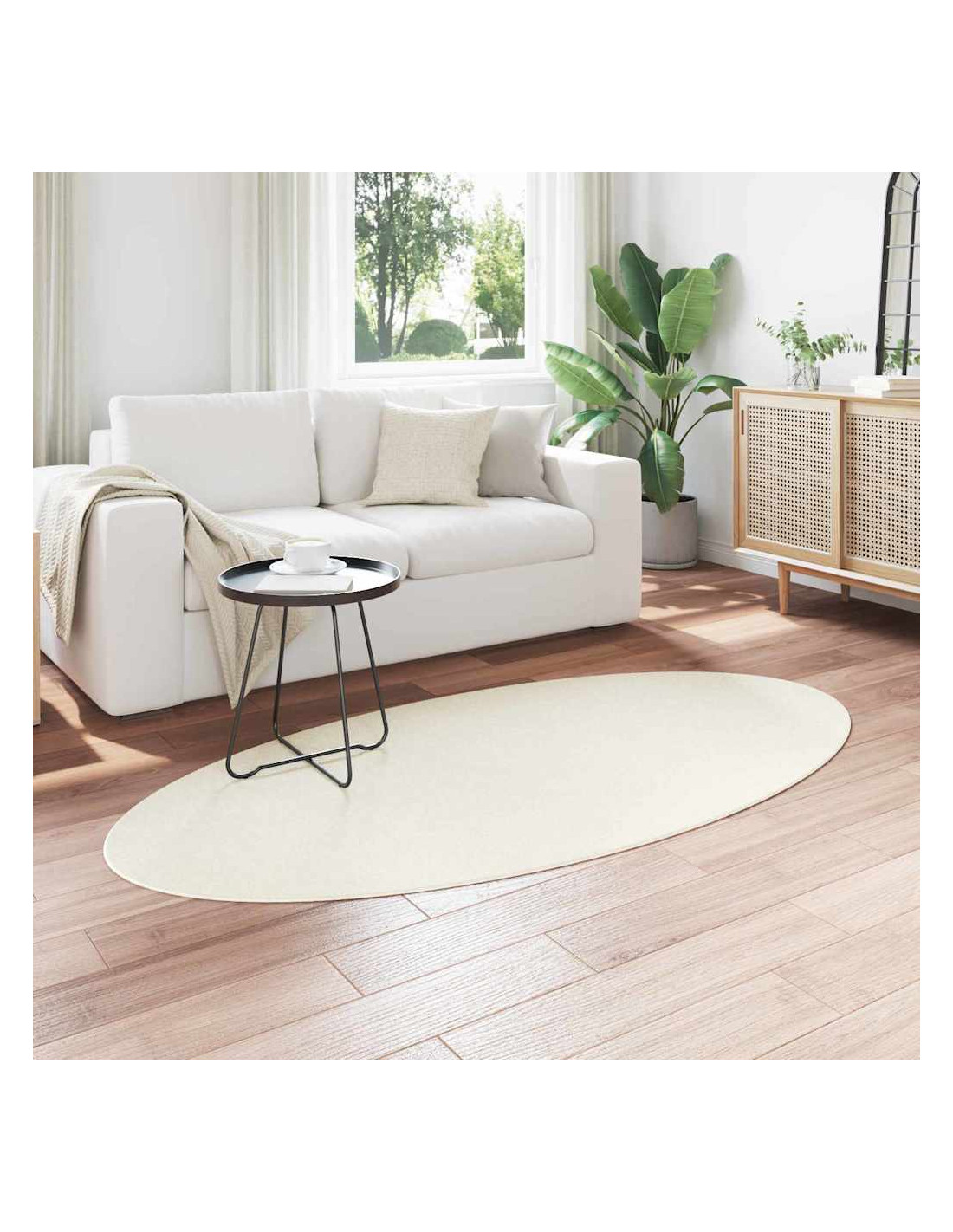 Questo tappeto in poliestere aggiunge un tocco contemporaneo in vari ambienti della tua casa. Con la sua forma ovale e il materiale al 100% in poliestere, è un'ottima aggiunta per corridoi o soggiorni. Il design moderno, insieme a funzionalità come il fondo antiscivolo, lo rende eccellente per ogni situazione.