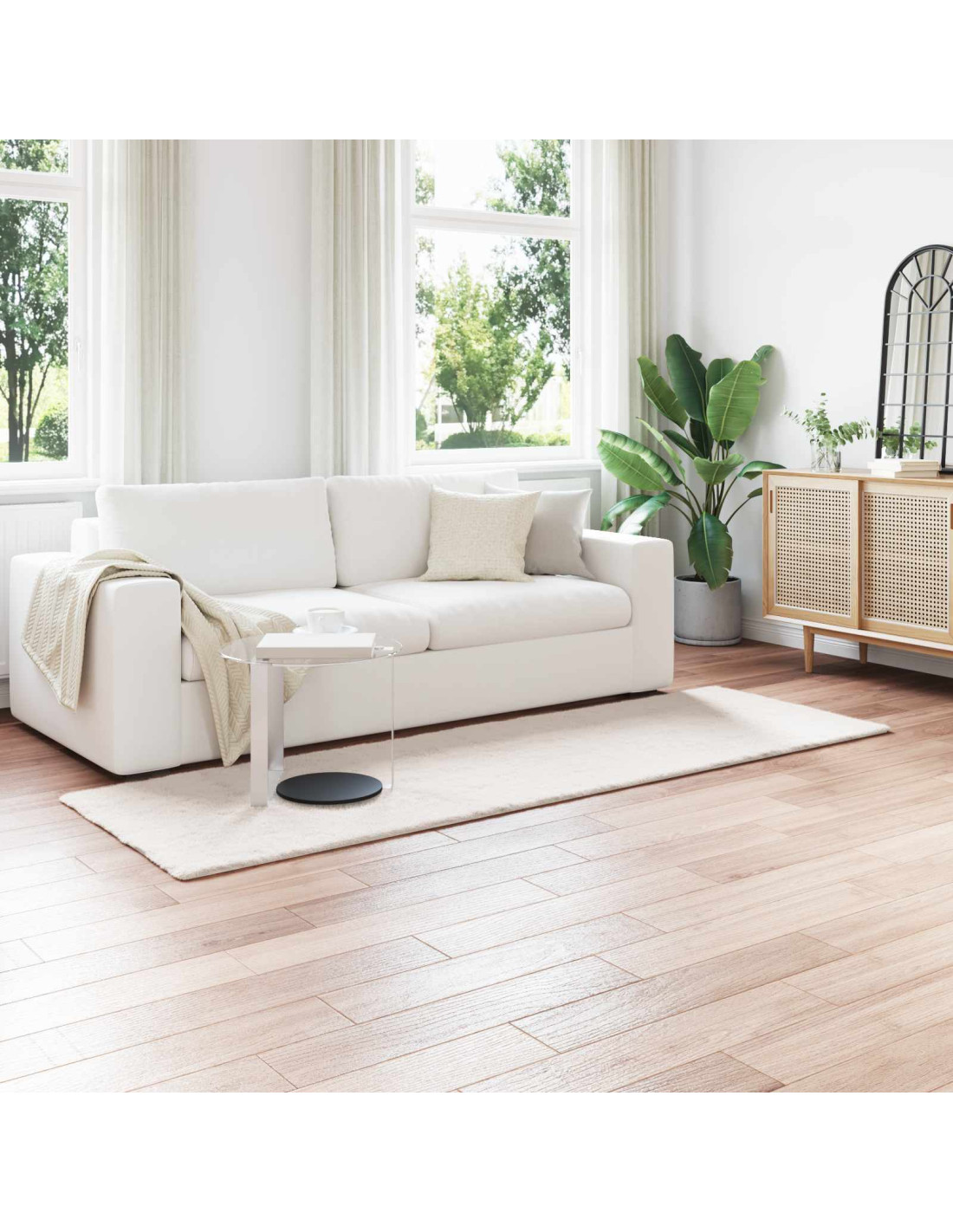 Questo tappeto in finta pelliccia di coniglio ha un look moderno e super morbido. Si adatta benissimo allo stile contemporaneo e minimalista, portando calore a qualsiasi ambiente. La superficie in finta pelliccia è incredibilmente morbida, perfetta per i piedi nudi e per un relax accogliente. Con il suo aspetto elegante, simula la pelliccia di coniglio vera, aggiungendo un tocco sofisticato ai soggiorni e alle camere da letto.