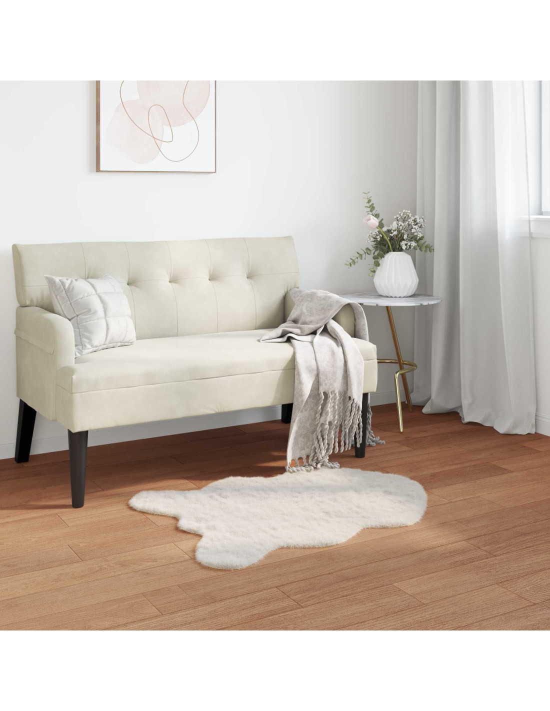 Questo tappeto in finta pelliccia di coniglio ha un look moderno e super morbido. Si adatta benissimo allo stile contemporaneo e minimalista, portando calore a qualsiasi ambiente. La superficie in finta pelliccia è incredibilmente morbida, perfetta per i piedi nudi e per un relax accogliente. Con il suo aspetto elegante, simula la pelliccia di coniglio vera, aggiungendo un tocco sofisticato ai soggiorni e alle camere da letto.
