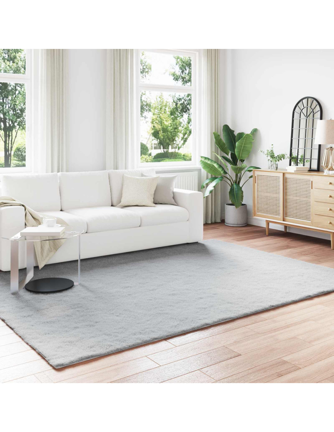 Questo tappeto in finta pelliccia di coniglio ha un look moderno e super morbido. Si adatta benissimo allo stile contemporaneo e minimalista, portando calore a qualsiasi ambiente. La superficie in finta pelliccia è incredibilmente morbida, perfetta per i piedi nudi e per un relax accogliente. Con il suo aspetto elegante, simula la pelliccia di coniglio vera, aggiungendo un tocco sofisticato ai soggiorni e alle camere da letto.