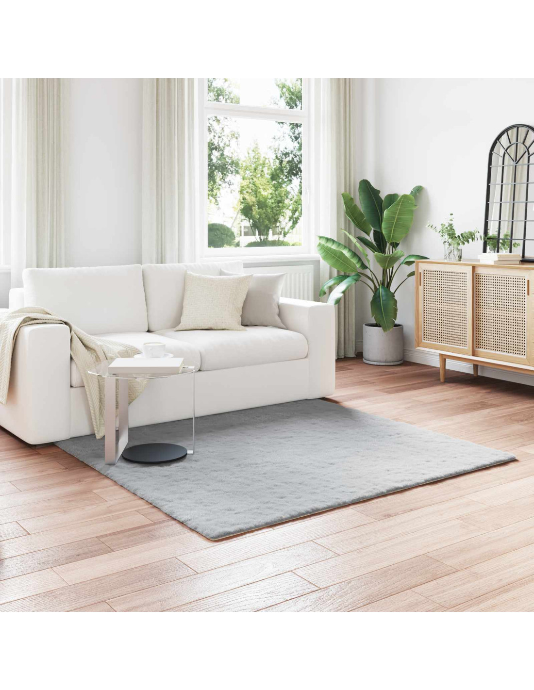 Questo tappeto in finta pelliccia di coniglio ha un look moderno e super morbido. Si adatta benissimo allo stile contemporaneo e minimalista, portando calore a qualsiasi ambiente. La superficie in finta pelliccia è incredibilmente morbida, perfetta per i piedi nudi e per un relax accogliente. Con il suo aspetto elegante, simula la pelliccia di coniglio vera, aggiungendo un tocco sofisticato ai soggiorni e alle camere da letto.