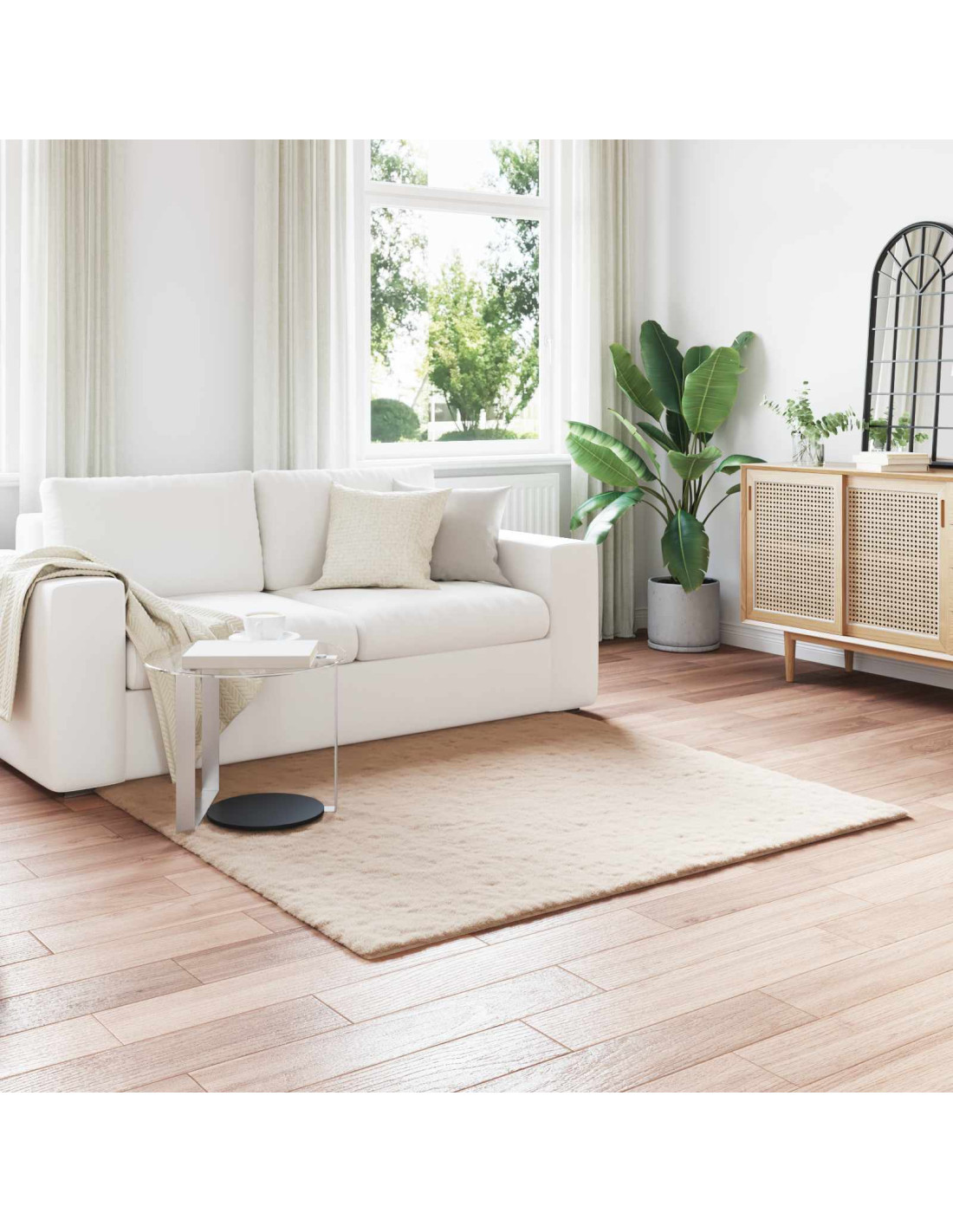 Questo tappeto in finta pelliccia di coniglio ha un look moderno e super morbido. Si adatta benissimo allo stile contemporaneo e minimalista, portando calore a qualsiasi ambiente. La superficie in finta pelliccia è incredibilmente morbida, perfetta per i piedi nudi e per un relax accogliente. Con il suo aspetto elegante, simula la pelliccia di coniglio vera, aggiungendo un tocco sofisticato ai soggiorni e alle camere da letto.