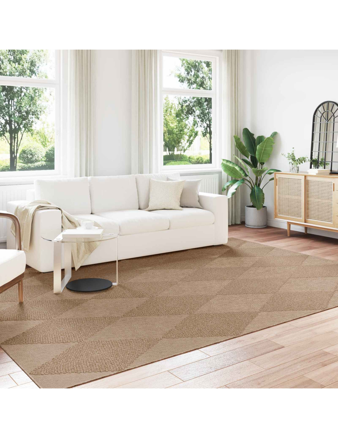 Questo tappeto moderno unisce design e praticità, rendendolo un'aggiunta chic a qualsiasi ambiente. Linee pulite e decorazioni minime lo rendono un elemento non solo bello ma anche utile. La superficie testurizzata e la tonalità marrone naturale si integrano bene in vari spazi, dal soggiorno al corridoio, portando un caldo tocco al tuo pavimento.