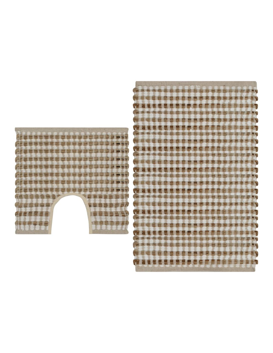 La fibra della iuta è caratterizzata da una elevata resistenza e da un colore naturale. La sua struttura è stata realizzata con intreccio a mano, da un tessuto in resistente poliestere. Il tappeto si adatterà perfettamente a qualsiasi bagno. La consegna include 1 tappeto da bagno e 1 tappeto da colonna.