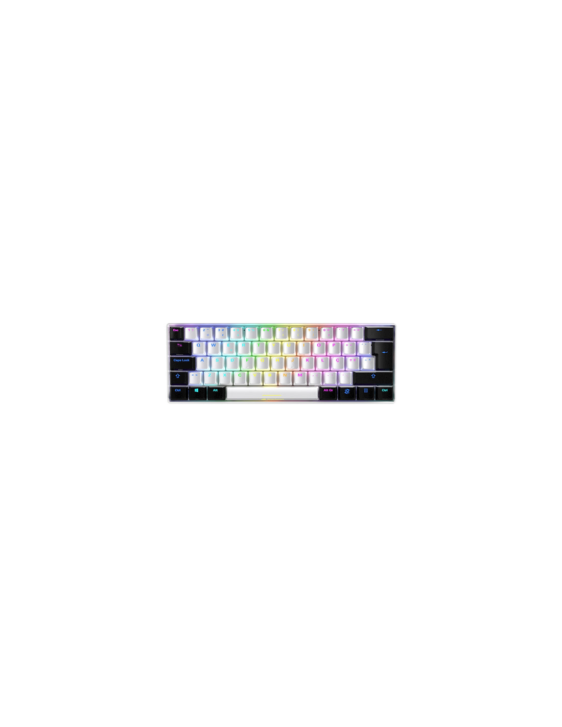 Sharkoon SGK50 S4. Fattore di forma tastiera: 60%. Stile tastiera: Dritto. Interfaccia dispositivo: USB, Struttura tastiera: QWERTY. Tipologia di retroilluminazione: LED RGB. Lunghezza cavo: 1,8 m. Utilizzo raccomandato: Giocare. Colore del prodotto: Bianco