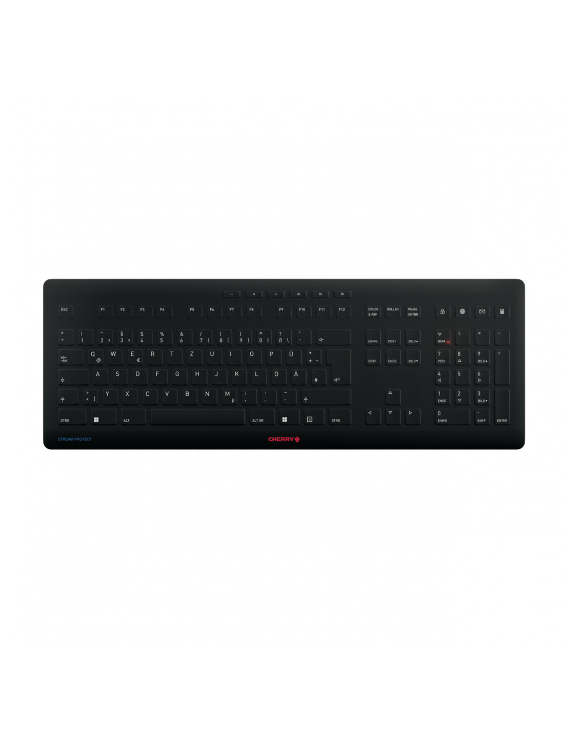 CHERRY Stream. Stile tastiera: Dritto. Tecnologia di connessione: Con cavo e senza cavo, Interfaccia dispositivo: Wireless a RF + USB, Struttura tastiera: QWERTZ, Numero pulsanti tastiera: 115, Utilizzo raccomandato: Universale. Colore del prodotto: Nero