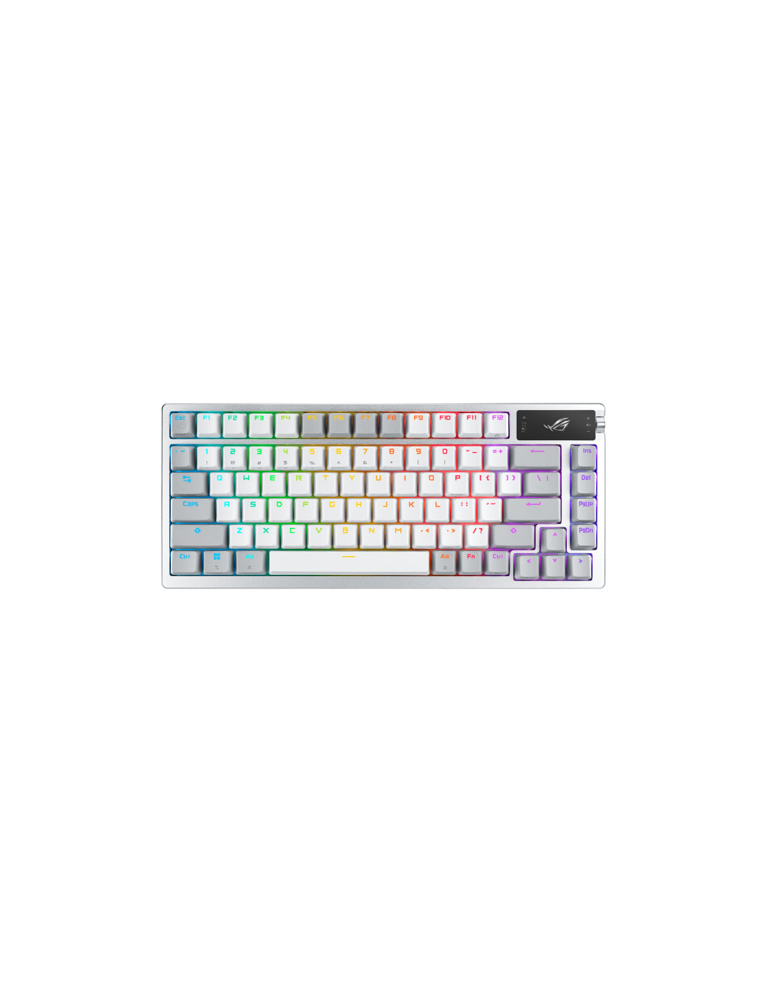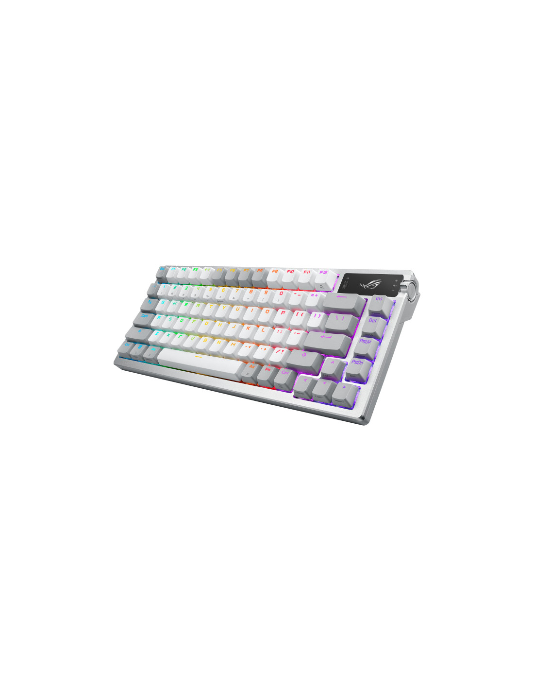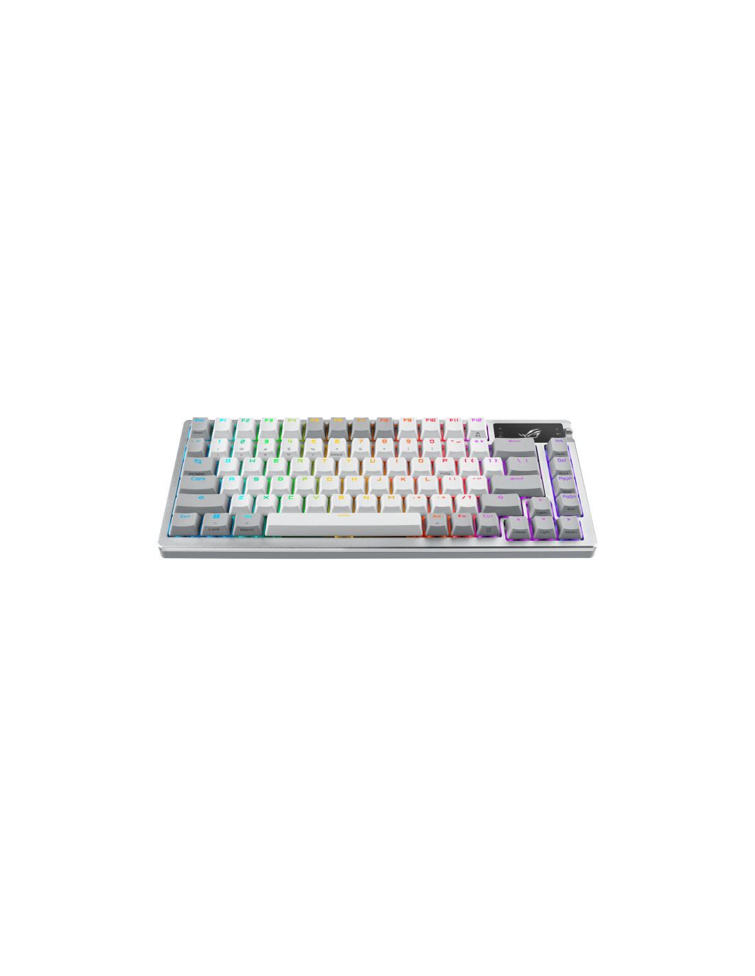 ROG Azoth è una tastiera gaming al 75% con caratteristiche DIY tradizionalmente presenti nelle tastiere personalizzate di alto livello. La cover superiore in metallo con guarnizione in silicone e smorzamento a tre strati, gli switch meccanici ROG NX sostituibili a caldo e prelubrificati e lo stabilizzatore della tastiera, i keycaps ROG PBT doubleshot e il kit di lubrificazione degli switch in dotazione si combinano per creare esperienze di digitazione senza precedenti. ROG Azoth dispone inoltre di un display OLED con controlli intuitivi, connettività tri-mode versatile con tecnologia wireless SpeedNova in modalità 2,4 GHz, tre posizioni di inclinazione regolabili e supporto MacOS.